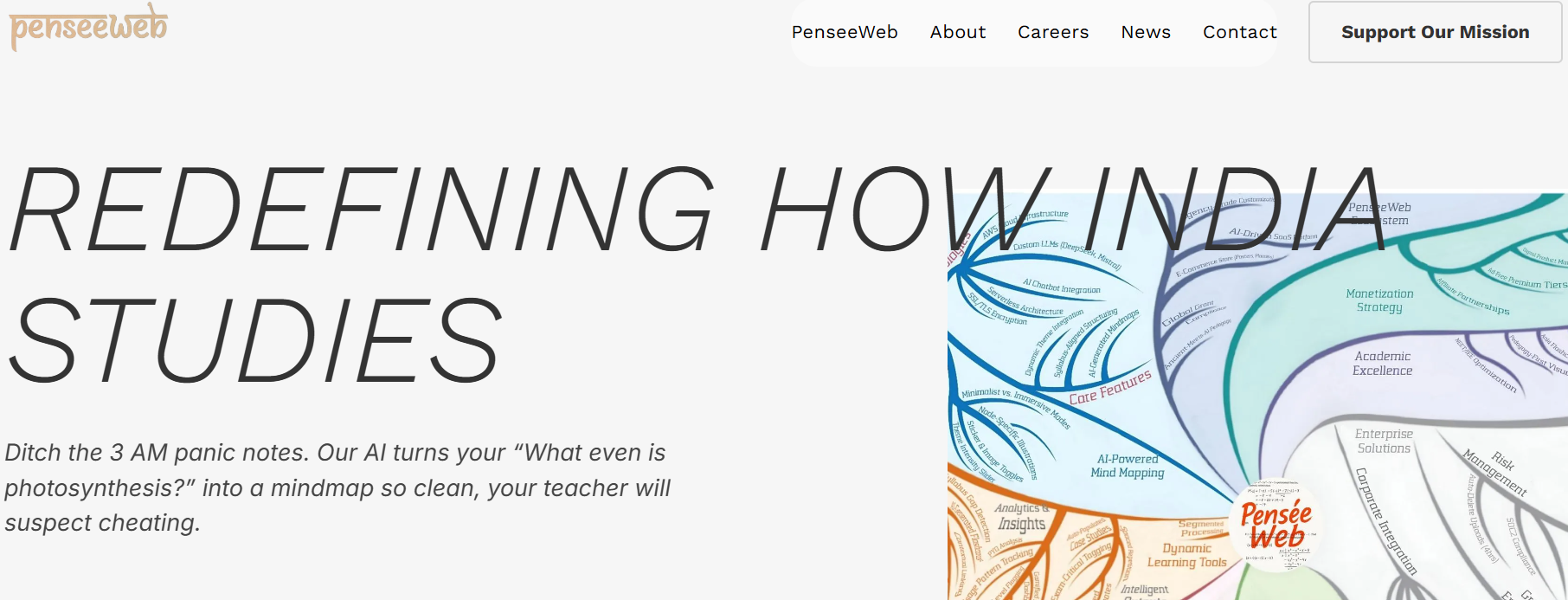 Hey everyone, We just launched PenseeWeb — a platform that turns messy syllabus PDFs, textbook pages, or even voice notes into clean, clickable mindmaps students actually want to study from. Built for India, not Silicon Valley. We didn’t set out to
