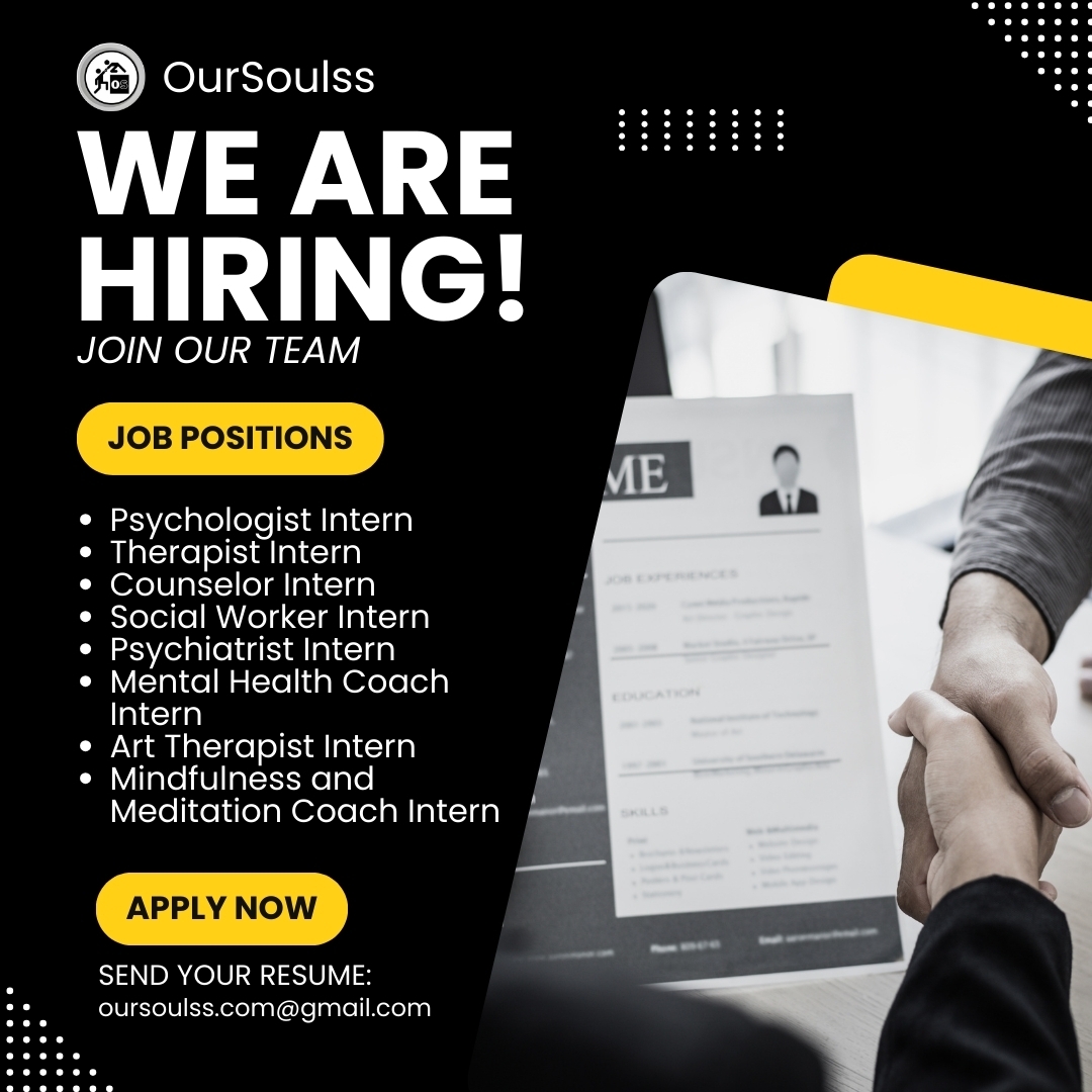 OurSoulss is at present recruiting! Become a part of our team and make a contribution to mental health and well-being. *Job Openings:* - Psychologist Intern - Therapist Intern - Counselor Intern - Social Worker Intern - Psychiatrist Intern - Menta