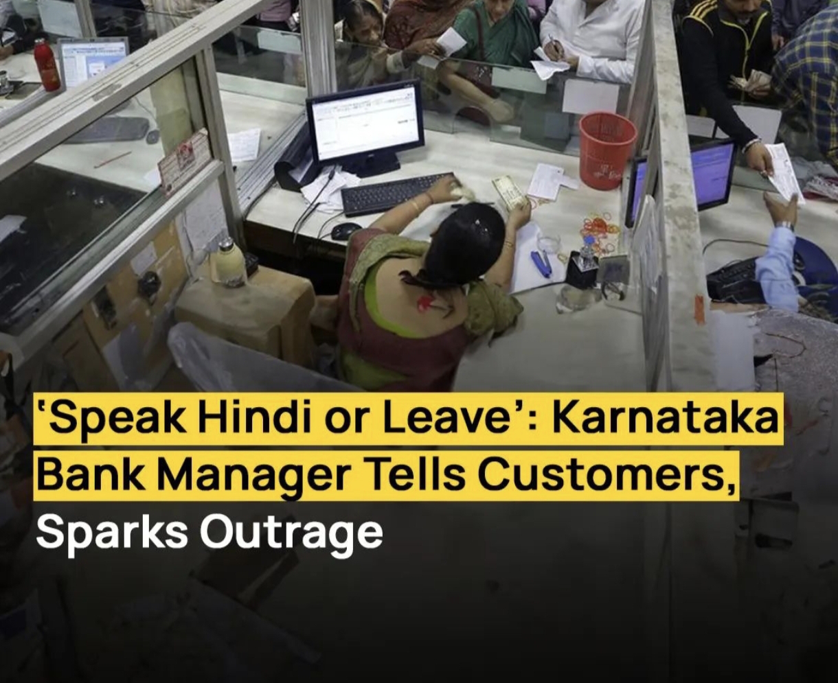 A heated argument broke out at a Karnataka bank when a customer asked the manager why service slips were only available in Hindi and English, with no Kannada . The manager allegedly responded by saying, "Speak Hindi or leave." This led to a disagre