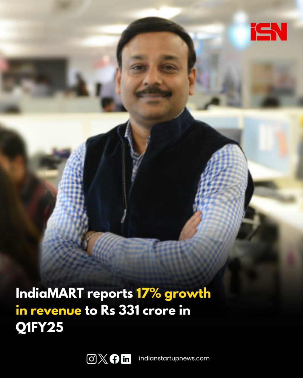 Noida-based IndiaMART, which is India's largest B2B marketplace, recently announced its financial results for the first quarter ending June 30, 2024. The company reported consolidated revenue from operations of Rs 331 crore, marking a 17% increase f