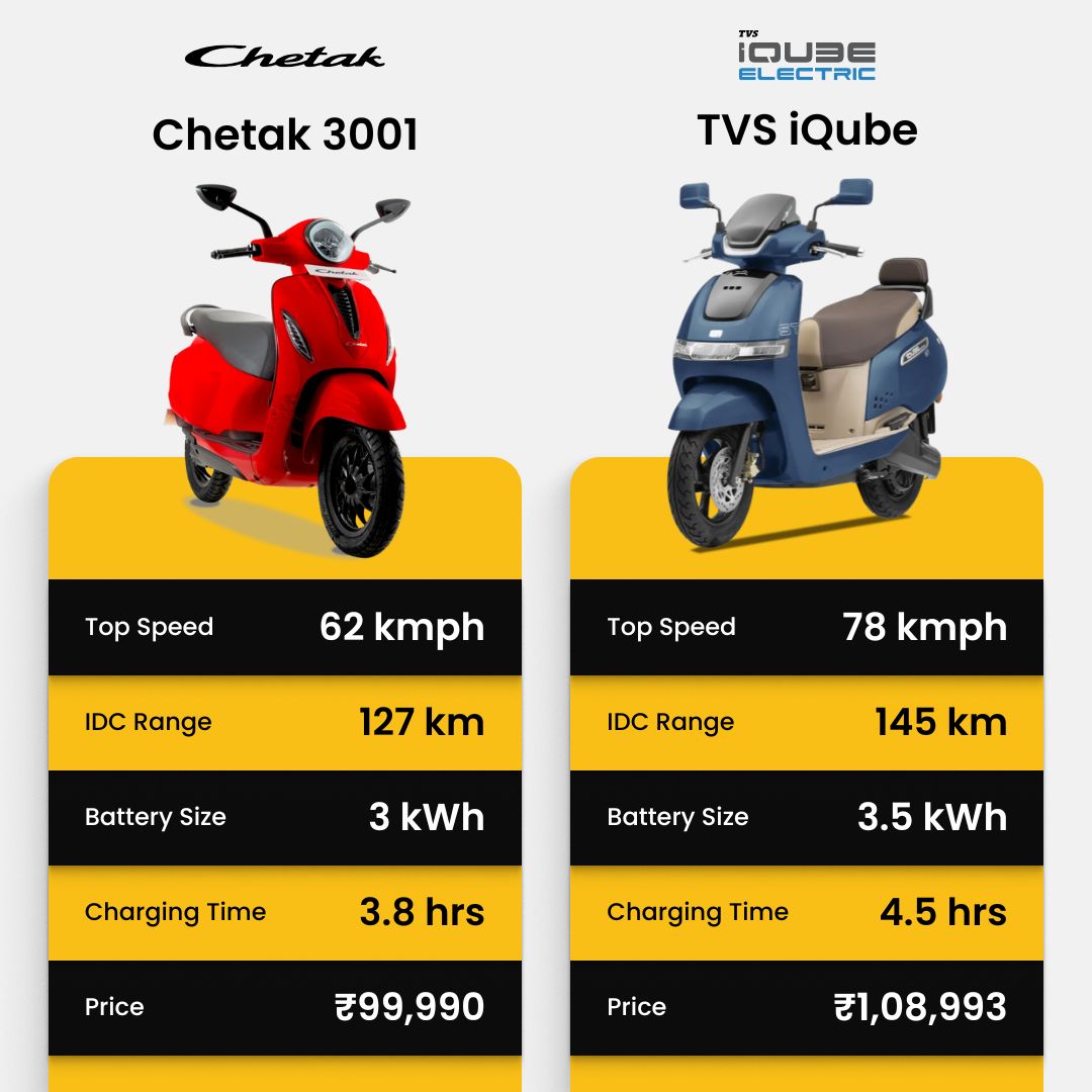 Bajaj Chetak 3001 vs TVS iQube: The EV Scooter Showdown India Can’t Ignore India’s electric two-wheeler market just got more exciting — and more competitive We’re comparing two top contenders: the newly launched Bajaj Chetak 3001 and the proven TVS