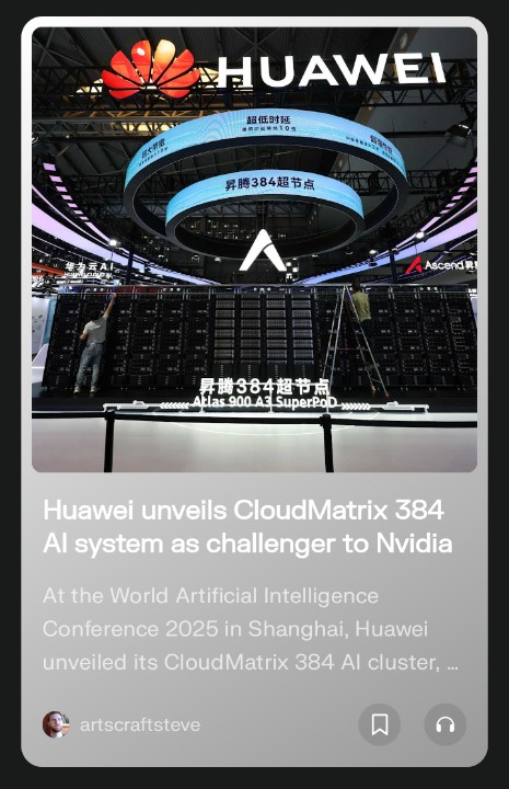At WAIC 2025, Huawei unveiled CloudMatrix 384, a supercomputer powered by 384 Ascend 910C chips delivering 300 petaFLOPS — nearly 2x faster than Nvidia’s GB200 NVL72. But here's the catch: it consumes 4x more power This move is less about efficie