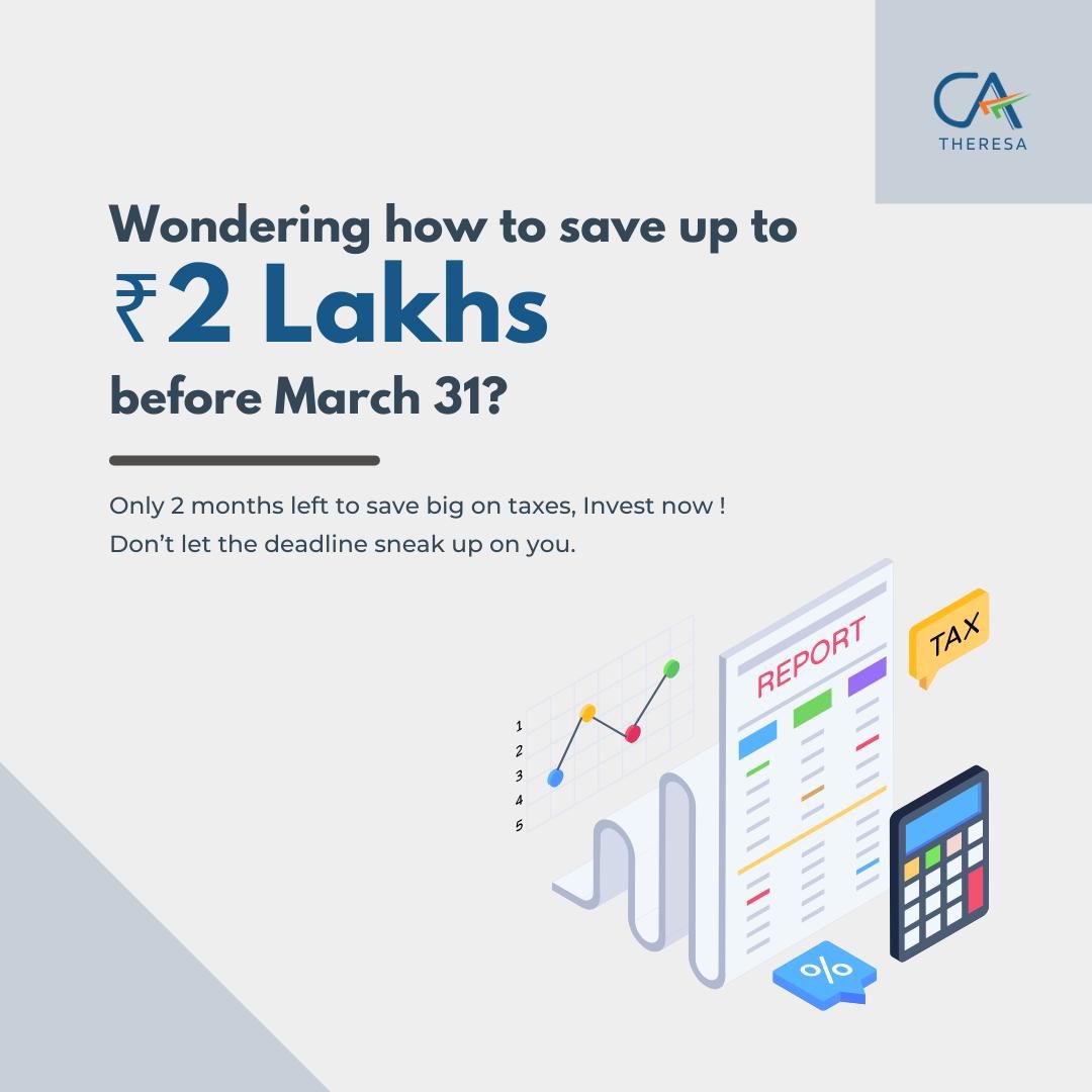 🚨 Tax Saving Alert: Only 2 Months Left! 🚨 Hi there! 👋 Here’s a quick guide to help you maximize your savings: 🔹 80C - Save up to ₹1.5L PPF, ELSS (higher returns), NSC, LIC, Tax-Saving FDs (5 yrs). 🔹 80D - Health is Wealth Save ₹25K (self/fami