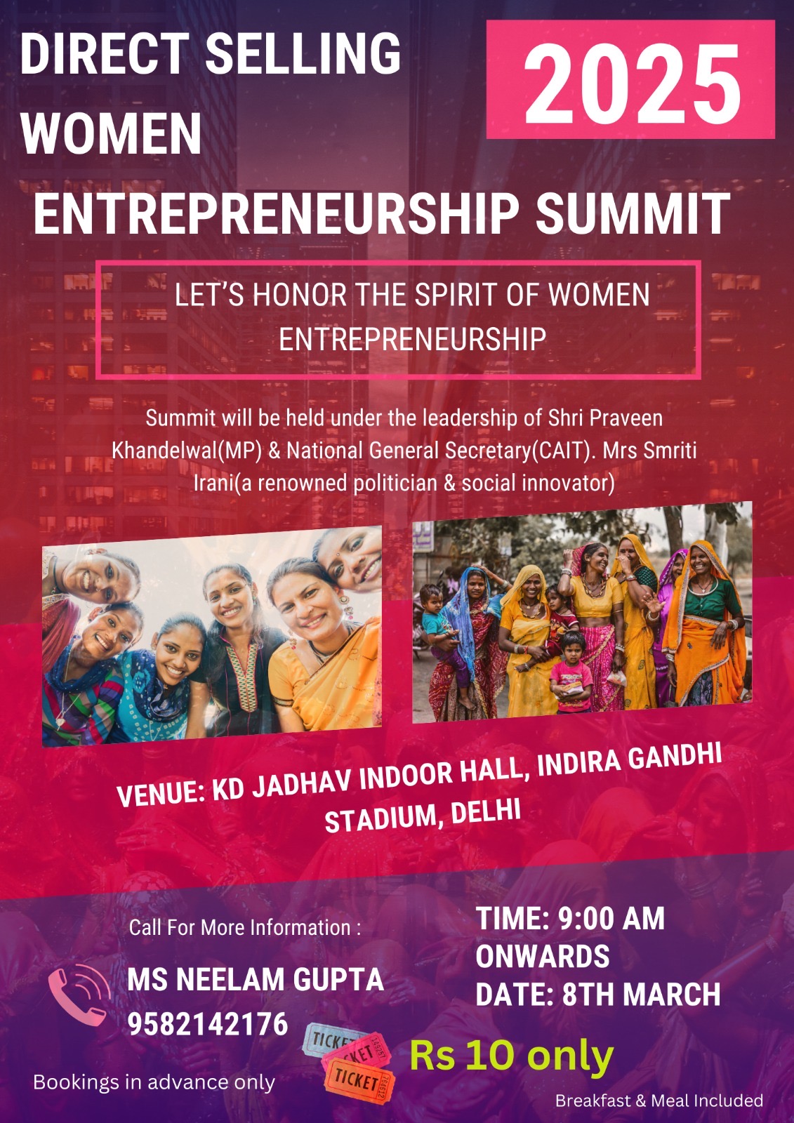 Hello Guys, I hope youโre doing well. I came across with this amazing entrepreneurship summit on 8th March in Delhi. Below is the detailed : - Name of the event: Direct Selling โ Women Entrepreneurship Summit 2025 - Anchor - Manish Paul finalize