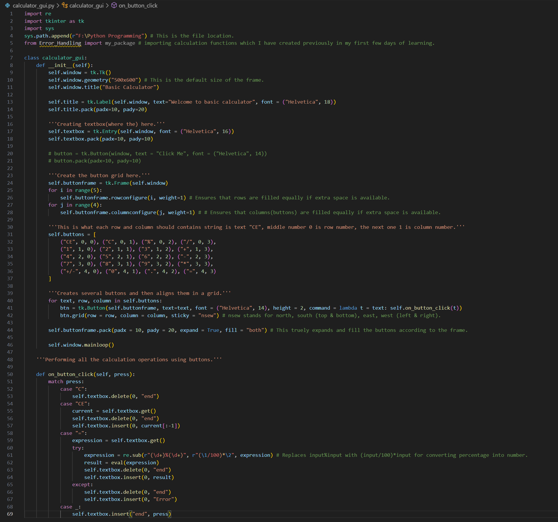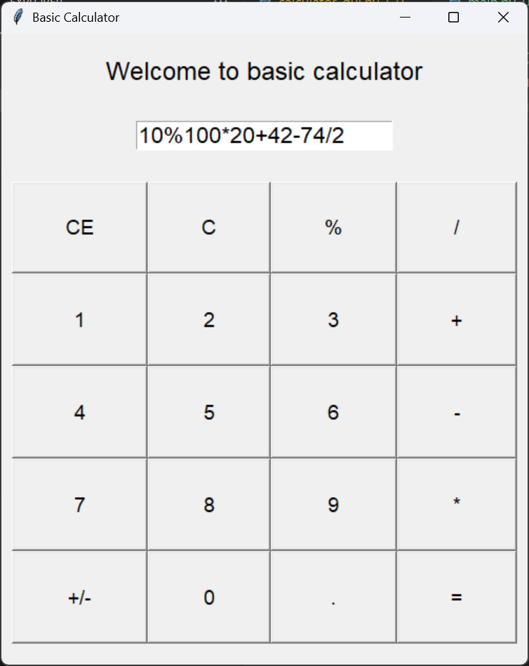 Day 30 of learning python as a beginner. Topic: making a fully functional calculator. Yesterday I got introduced to tkinter and was successful in creating a basic graphical layout for the calculator and today I added logic into it and now I finally