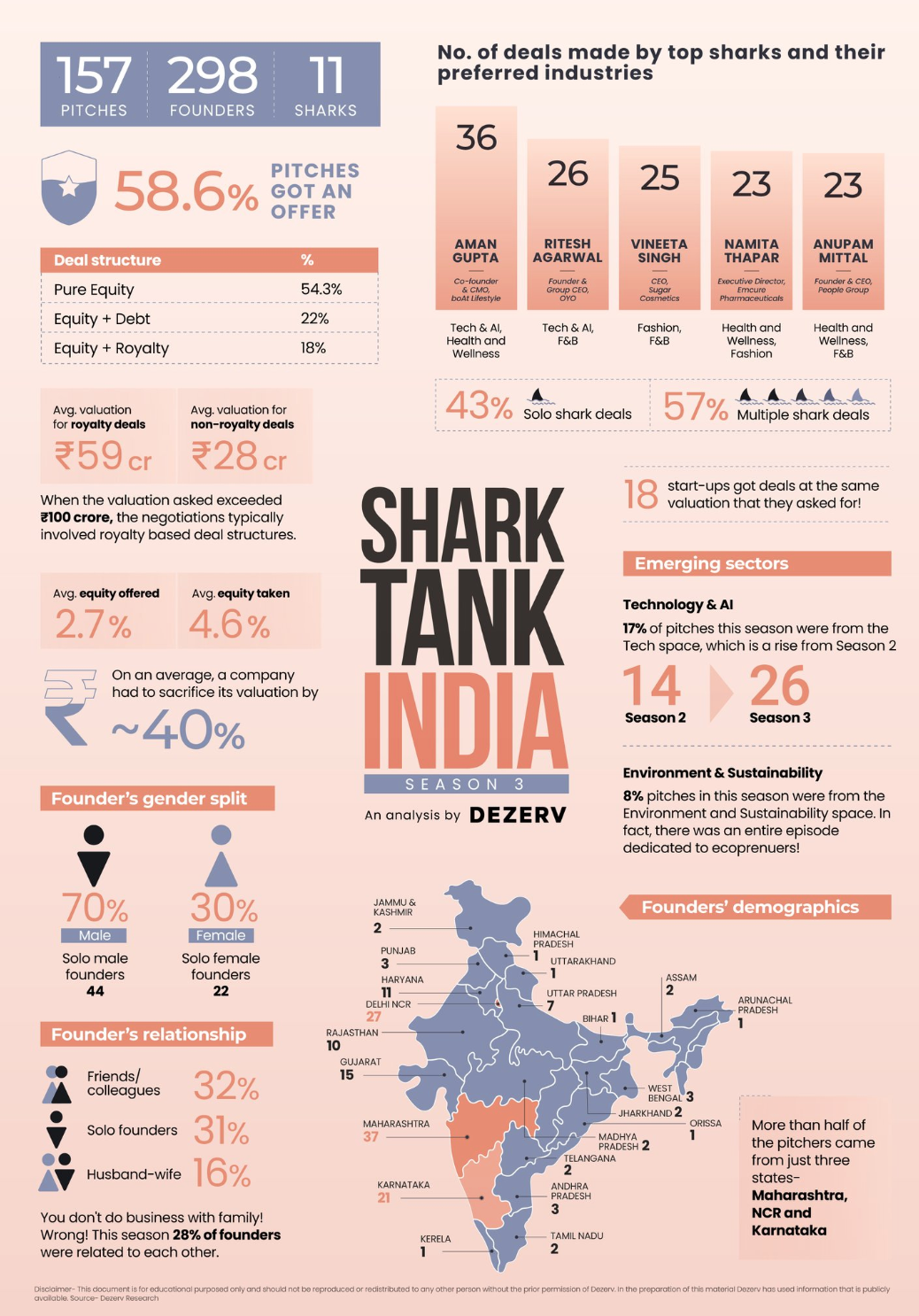 Shark Tank India Season 3 summarised, my takeaways ✅ Aman Gupta style of investing is the new charm! ✅ Tech in India in general will perform better compared to what we were doing previously. ✅ People will not only learn on how to start a startup but also how to invest. 🚨Obvious things: 1️⃣ AI is the new boom 2️⃣ Female founders are still less 3️⃣ Climate startups are still not very revolutionary but the whole story revolves around saving earth. 4️⃣ Shark Tank India gives amazing marketing opportunities but most startups dilute a lot of equity in the name of sharks (which is fair too)