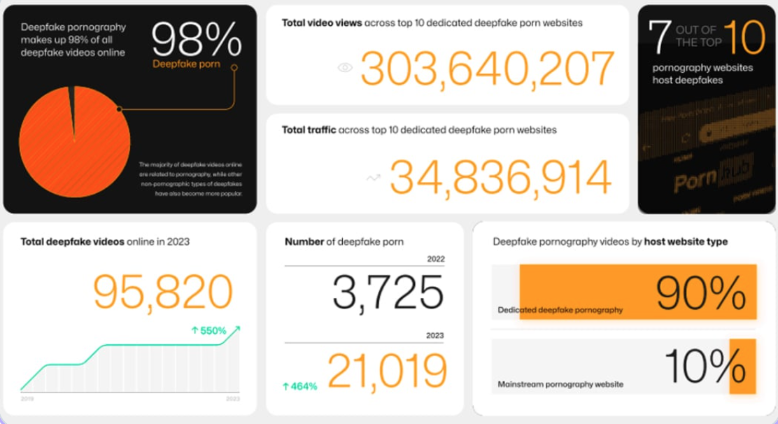 Nearly all of the deepfake videos are pornographic, with 96% of the deepfakes consisting of pornographic content, and all of that pornographic content featuring women; with AI you can see that spike; this use case of AI should be monitored.