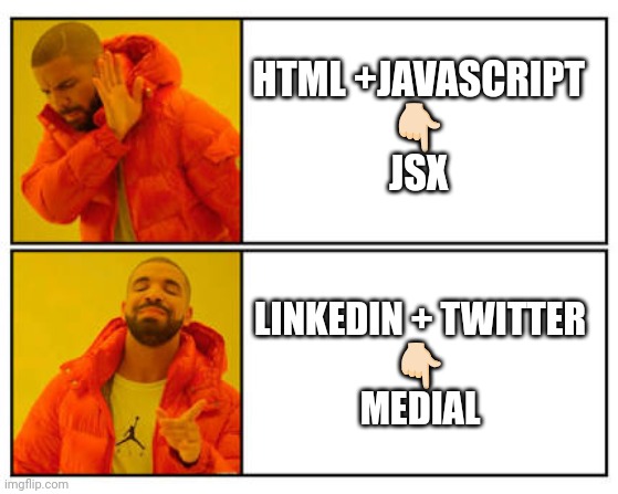 Just joined Medial, and it’s like JavaScript and HTML had a baby named JSX! 🤯 The UI is a delightful mix of LinkedIn and Twitter. For a moment, at first, I thought LinkedIn and Twitter had a secret collab! 😂 Excited to dive into this tech mashup!