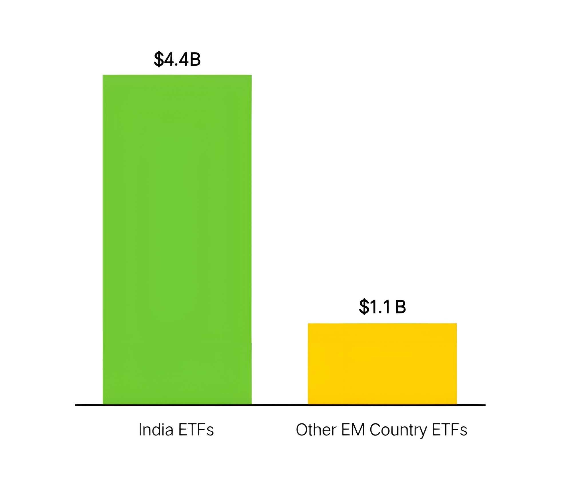 ONE INTERESTING OBSERVATION SERIES DAY #1 In 2023, investors put $4.4 billion into U.S.-listed India-focused ETFs. Strong earnings growth and quality companies helped India double its share of the MSCI Emerging Markets ex-China Index over six years