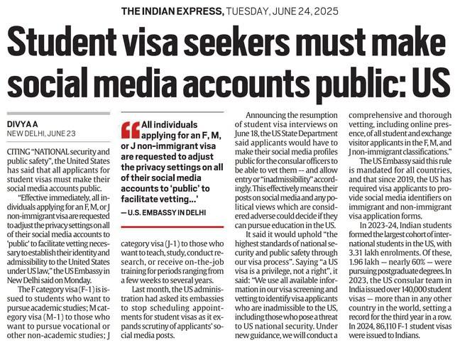 Another huge startup opportunity The U.S. now requires student visa applicants to make their social media public. That means every post, photo, and like is now part of your visa application. One wrong impression online could raise a red flag—and yo