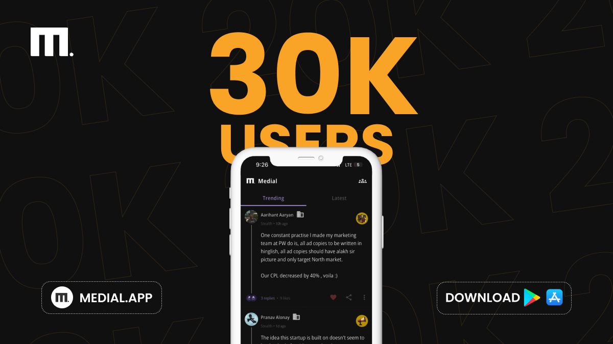 Medial crossed 30k users today. You guys have helped us build the best community in India for our niche. Forever grateful. Unlocking magic over the next two weeks. Stay tuned. And so so grateful to each one of you. ๐โค๏ธ