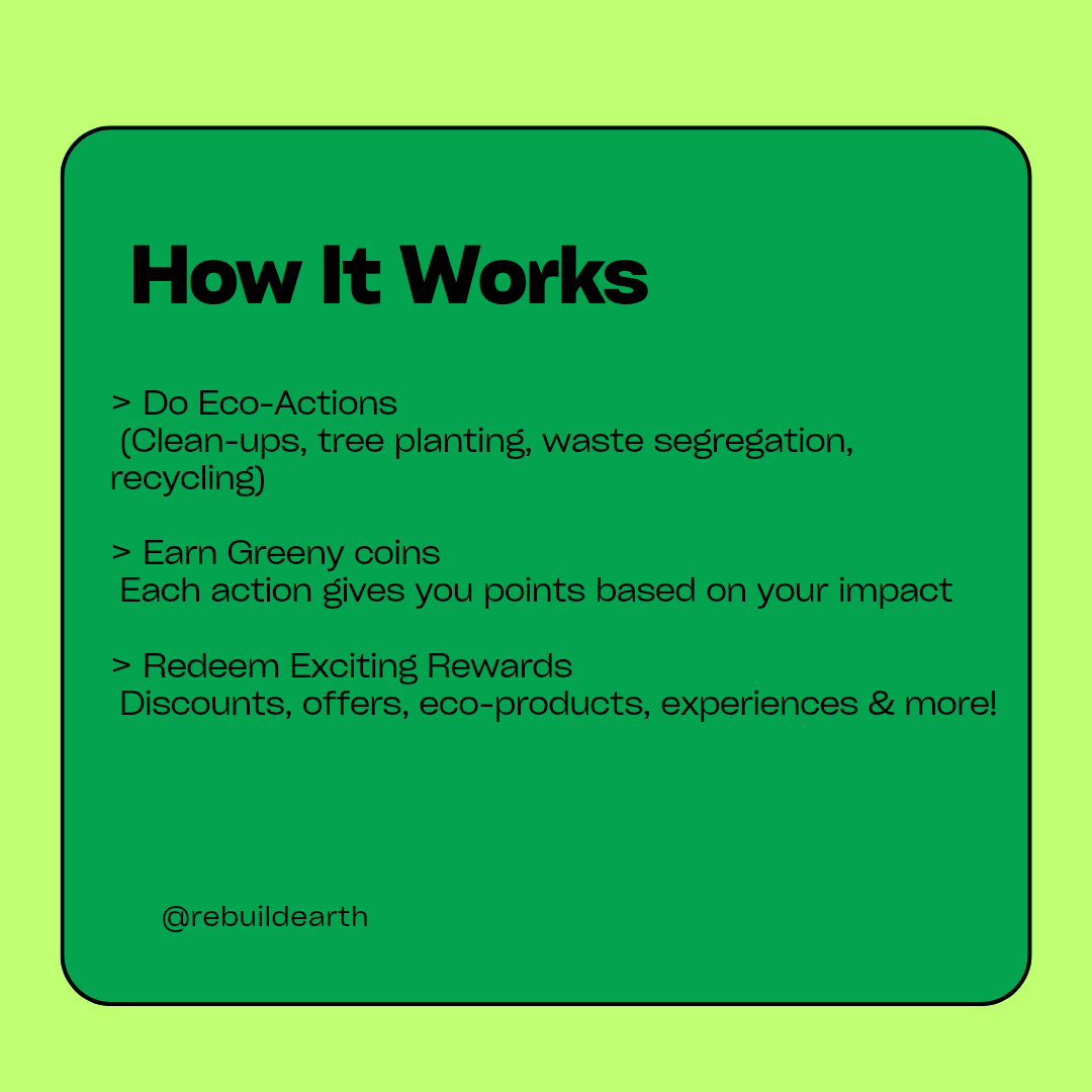 🌍Introducing Greeny Coins: A Step Towards Sustainability!🌿 At Rebuild Earth, we are thrilled to unveil Greeny Coins-our unique initiative designed to reward environmentally conscious actions! • What are Greeny Coins? Greeny Coins are not cryptoc