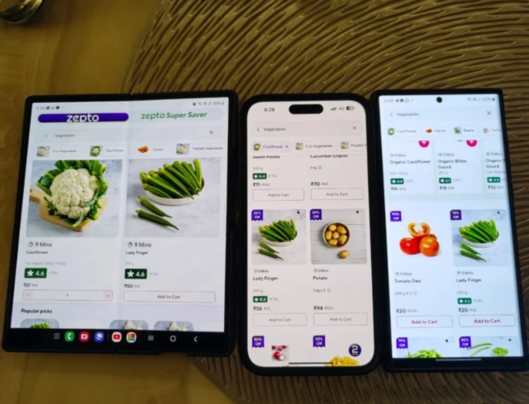 wtf...🤯 ZEPTO Hack or Trap? 😳 You must have heard about pricing parity in devices in shopping apps. I didn’t use to believe it, but I tried it....and surely enough, different prices 😮 Device 1: Z Fold 6 ... 250gm bhindi ... ₹50 Device 2: iPhone
