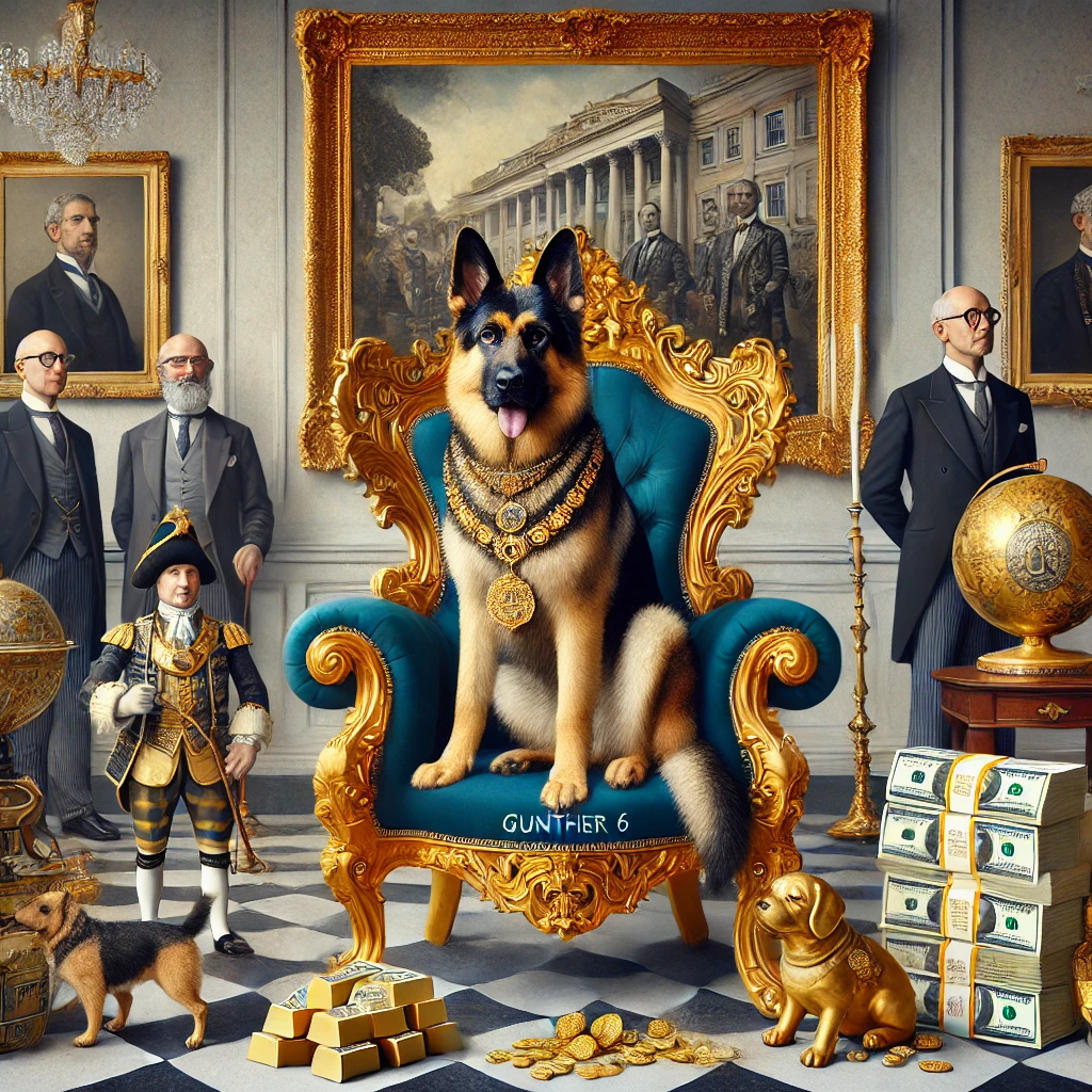 "Gunther 6 - Worlds Richest Dog" š Let's start from the beginning! A German woman with a large networth had no children, so she decided to leave her entire fortune to her favorite dog, Gunther 3. The wealth was passed down from Gunther 3 to succ