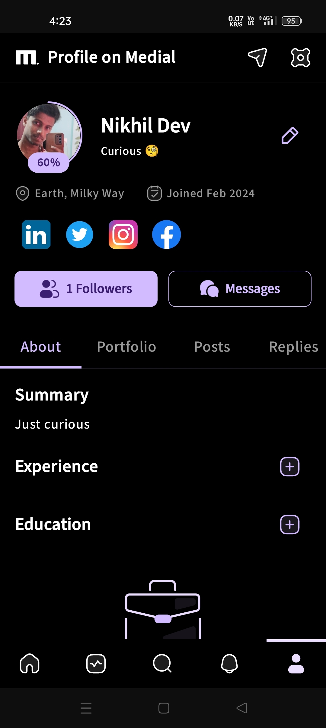 On @medialapp I can update my profile to update from 60% over above. Can't add my education after entering degree and strem, the organisation it is not showing to complete it And can't add education from linked in after paste the link in it