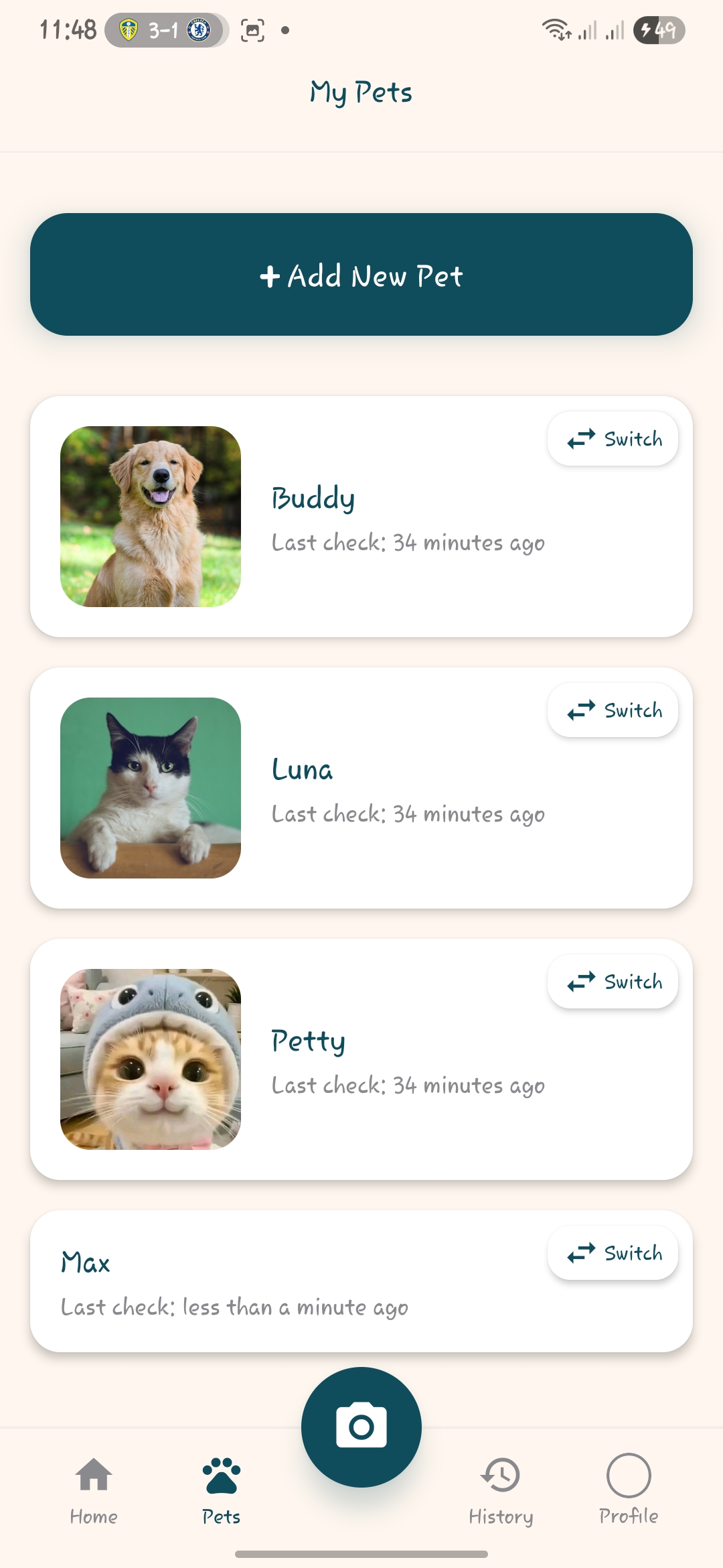 Day 11 of risking everything to build something bigger than myself. Today was productive. I implemented the Pet Profile page, updated the Pets page so users can switch between their pets, and reworked the History page. I also added a wellness overv