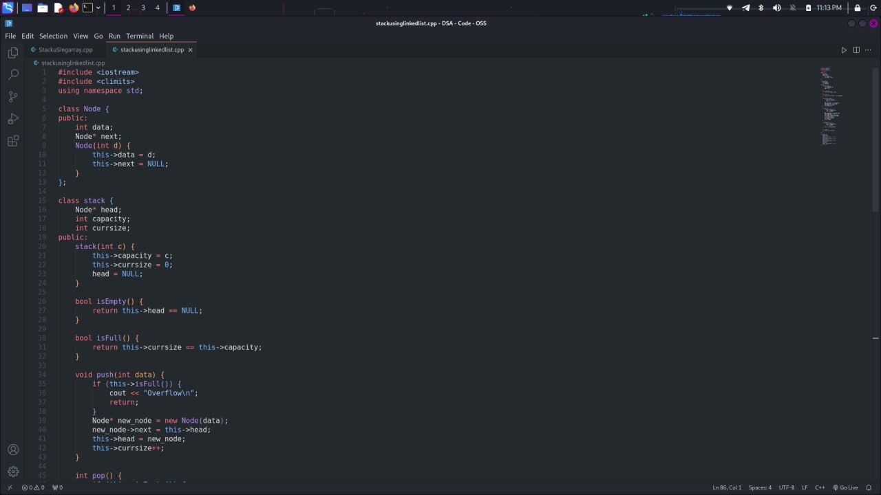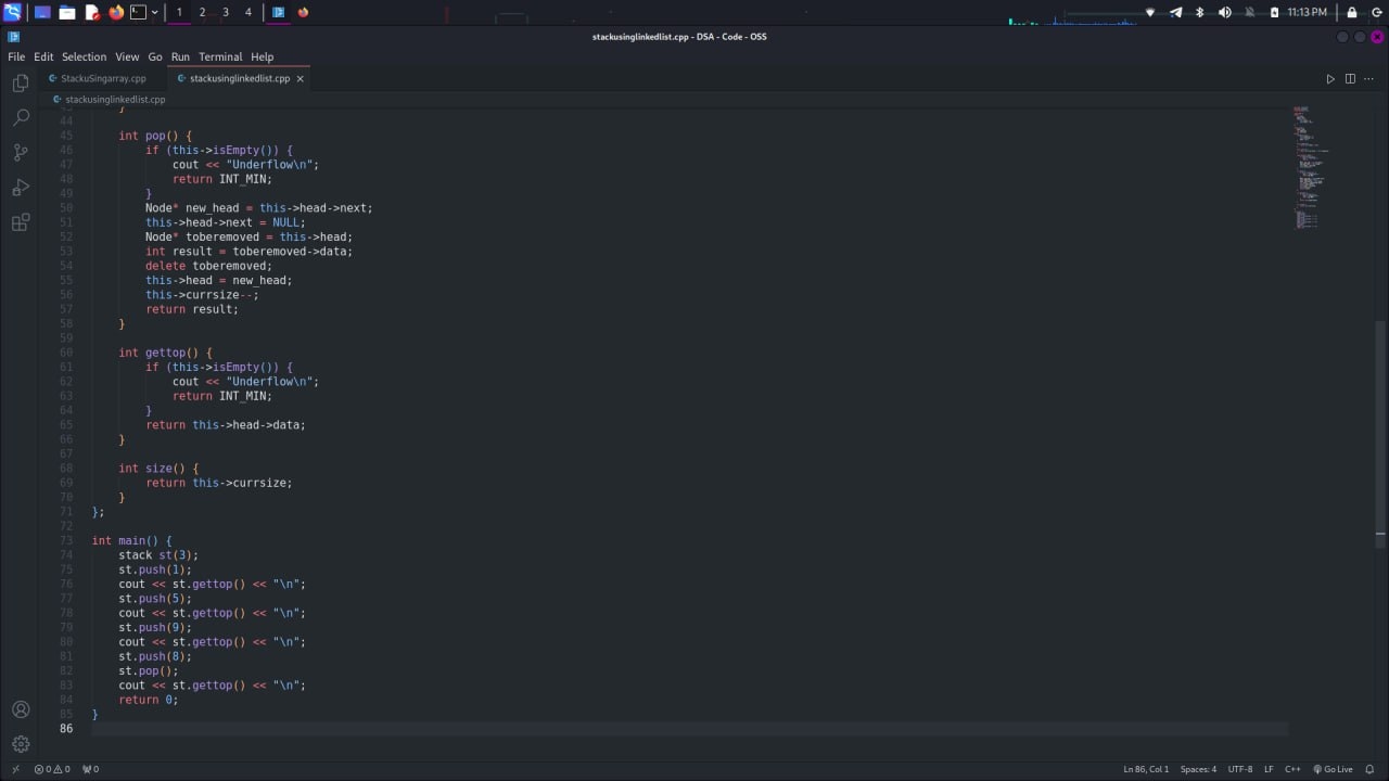 "Stacks in C++: Your trusty tool for managing data with LIFO (Last In, First Out) behavior. From undo functionality to expression evaluation, mastering the stack unlocks a world of efficient data manipulation! #cplusplus #datastructures #coding" Code