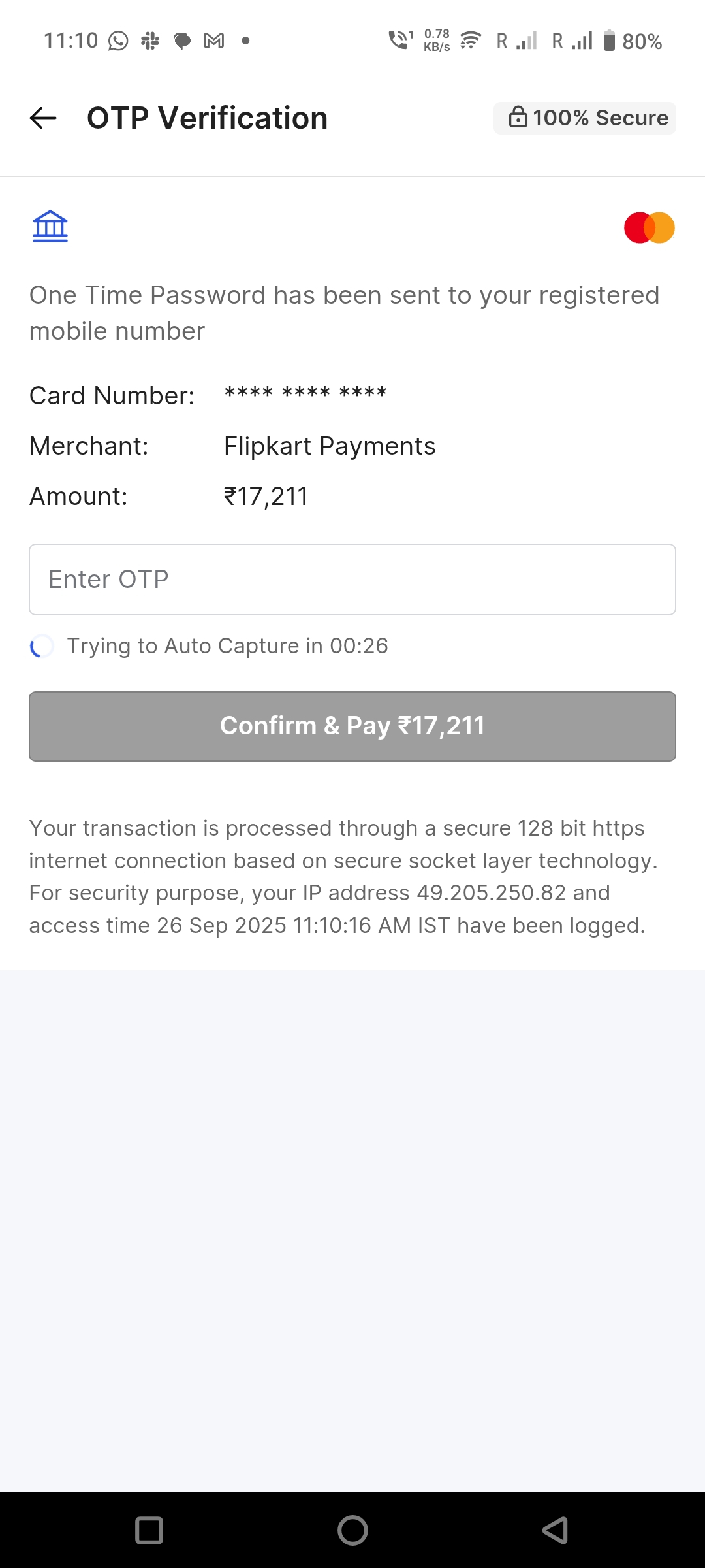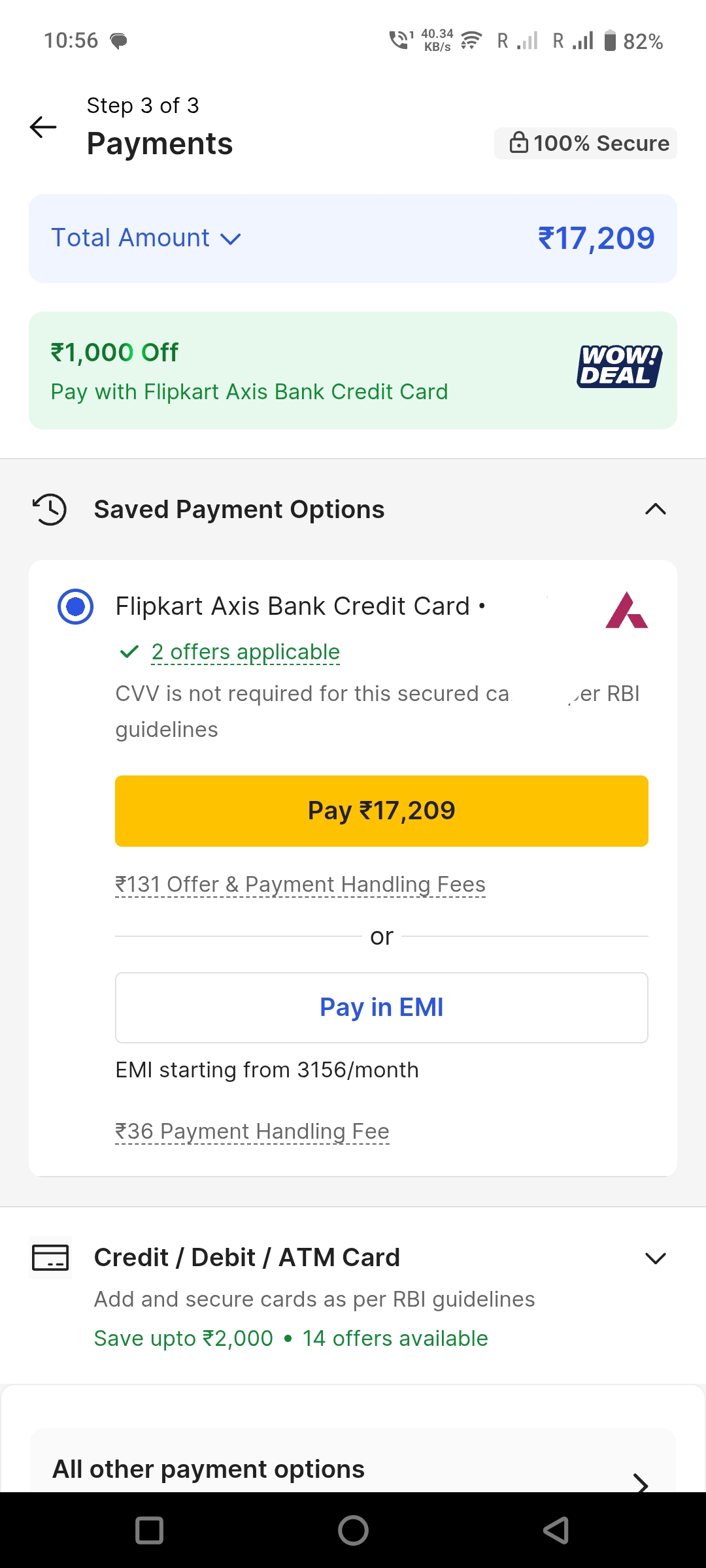 I was ordering mobile through Flipkart and I can see some amount issue in the same. On the checkout page it shows 17209 and on the otp screen it is showing 17211. From where this 2 rupees came? When I called customer care they are saying there must b