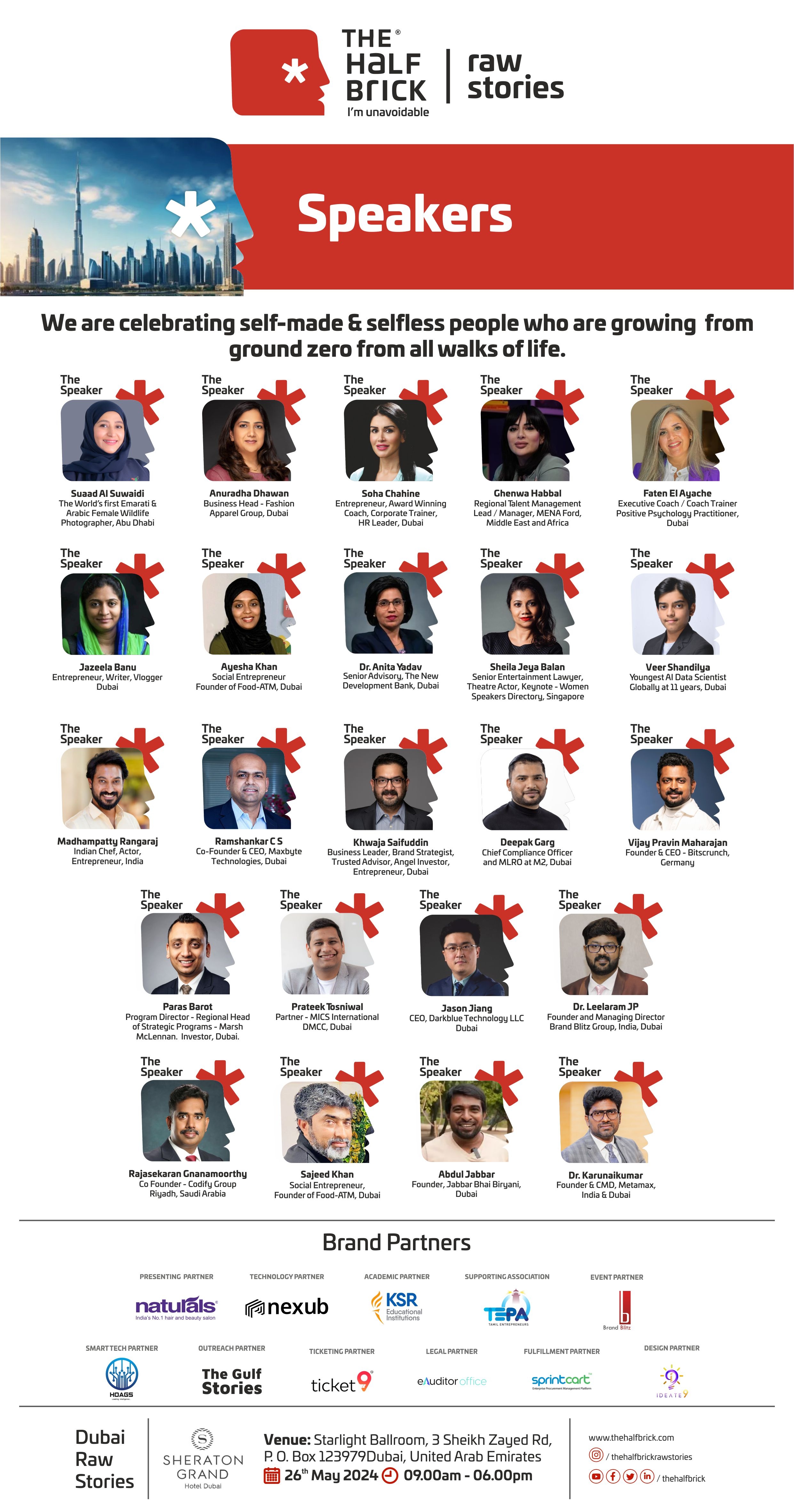 Thrilled to Have an extraordinary event in TheHalfBrick celebrating the indomitable spirit of self-made, selfless individuals who have triumphed from humble beginnings. 🎙️ Dubai Raw Stories will showcase over 20+ speakers, each sharing their unfilt