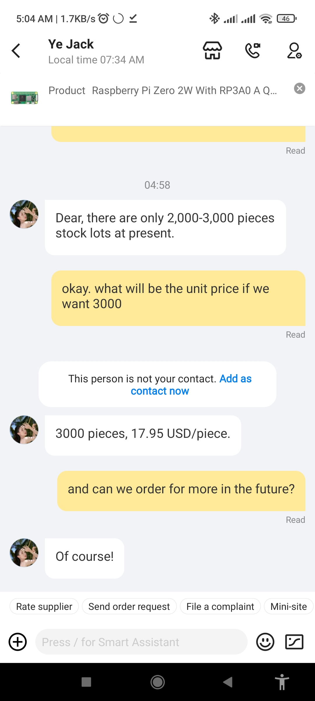 I wanted to get price estimates for raspberry pi zero 2w when ordering in bulk. So i enquired on alibaba. How come unit price in bulk is same as when buying 1 from sites likes robu or amazon? There should be a huge price difference isnt it?