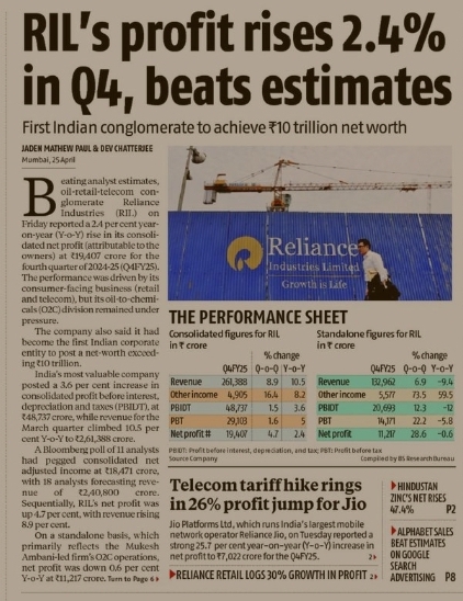 "RIL Flexes Muscles: Smashes Estimates, Hits โน10 Trillion, and Throws a Profit Party!" RIL pulling a 2.4% profit rise feels like that moment when you expect just a few sparks, but the whole firework show goes off instead! Not only did they beat the
