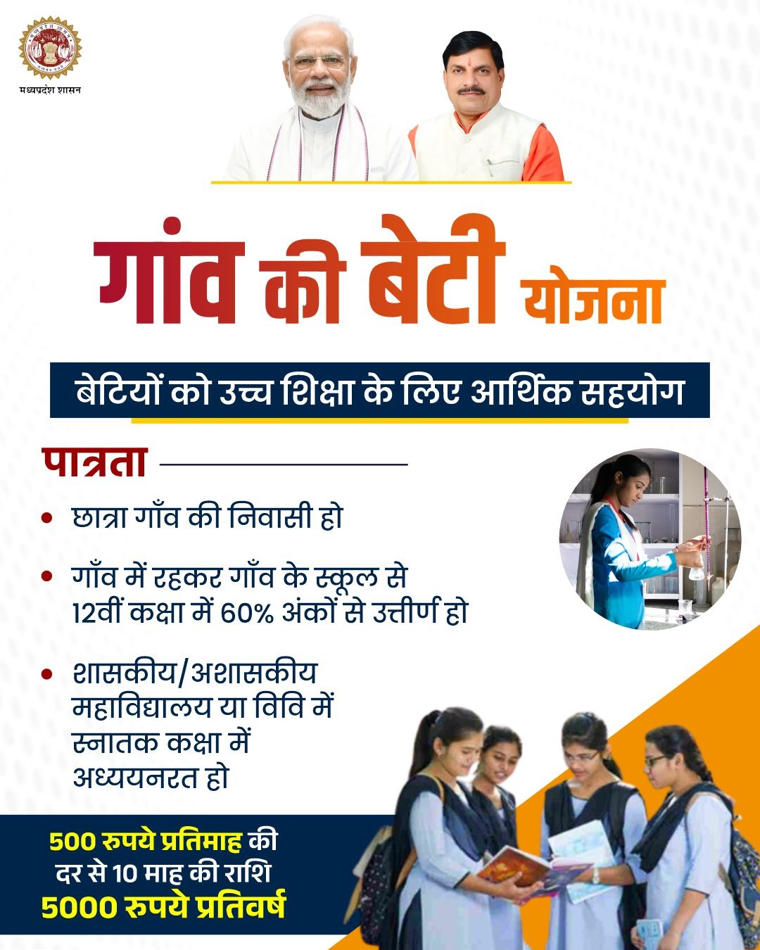 Education should never stop because of money—especially for girls from rural India. Keeping this in mind, the Madhya Pradesh Government launched the Gaon Ki Beti Yojana to support talented rural girl students who want to pursue higher education after