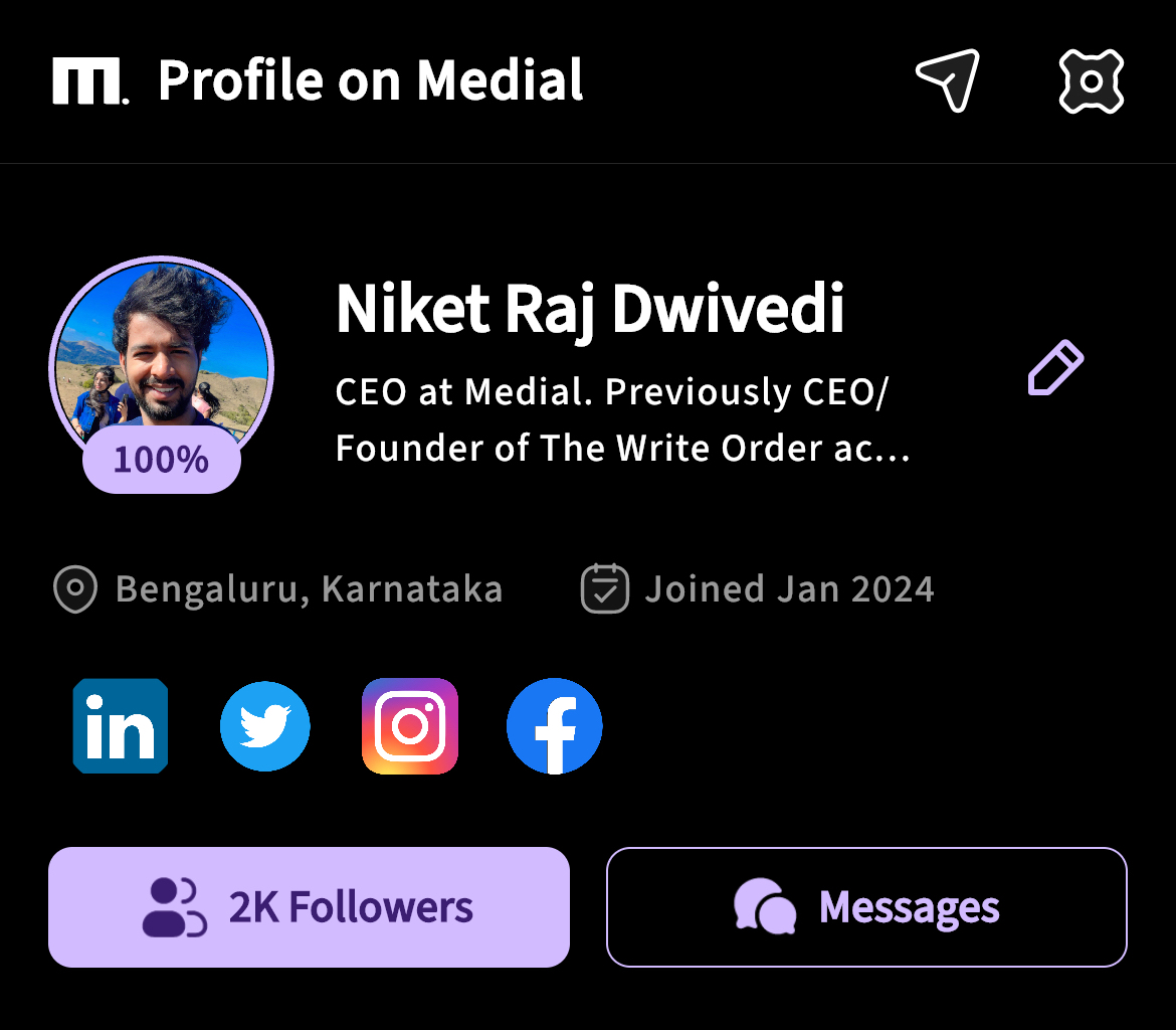 Medial now has 10 folks who have more than 100 followers purely built on content and engagement on the community. Hoping to have more than 1000 folks like this soon as we continue our growth spree. Thank you everyone for being consistent on Medial.