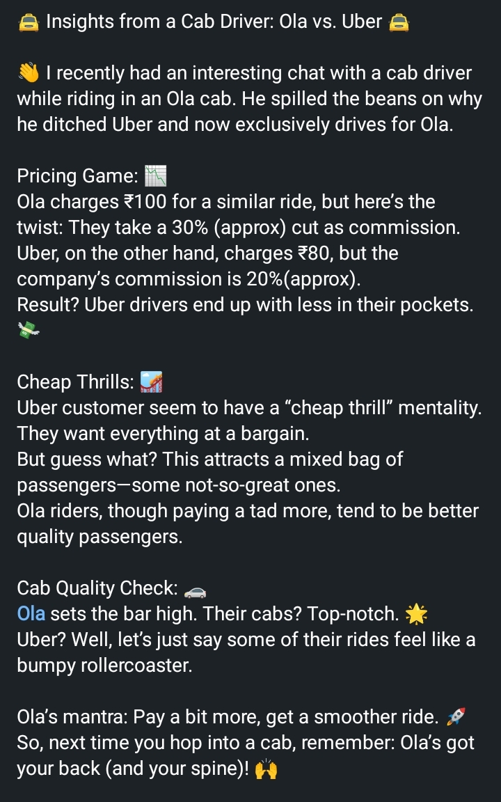 Insights from a cab driver : Ola vs Uber 🚖