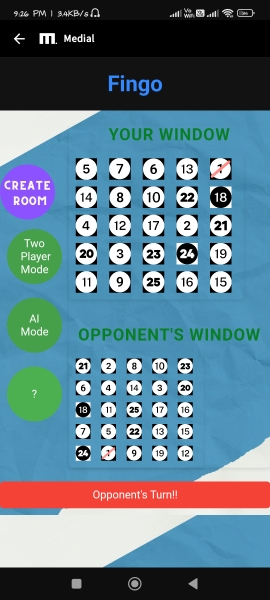 When I clicked 15 number Error coming opponent's turn them it doesn't go anywhere just stuck there I can only able to use left hand buttons which is create room, two player mode, ai mode and ? That's it Your window and opponent's window not working..