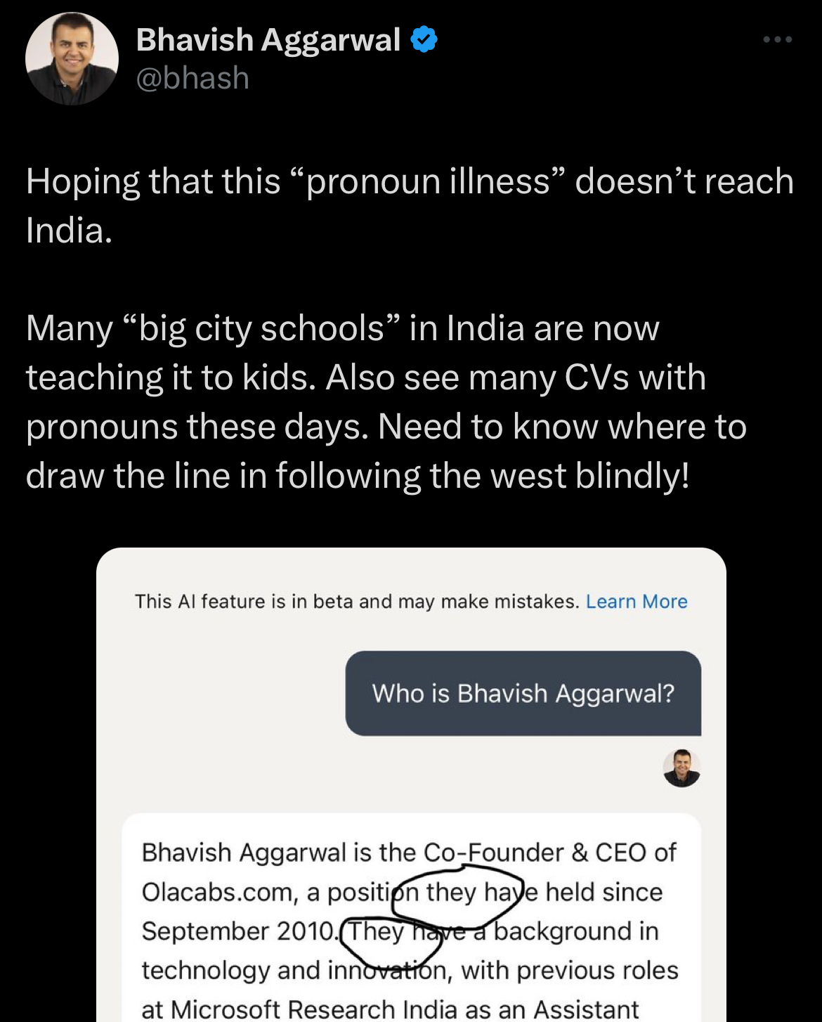Bhavish got no chill. What do you guys think? Gender pronouns should exist? (They/them, she/her, he/him, that/their) or should we stick to he and she.