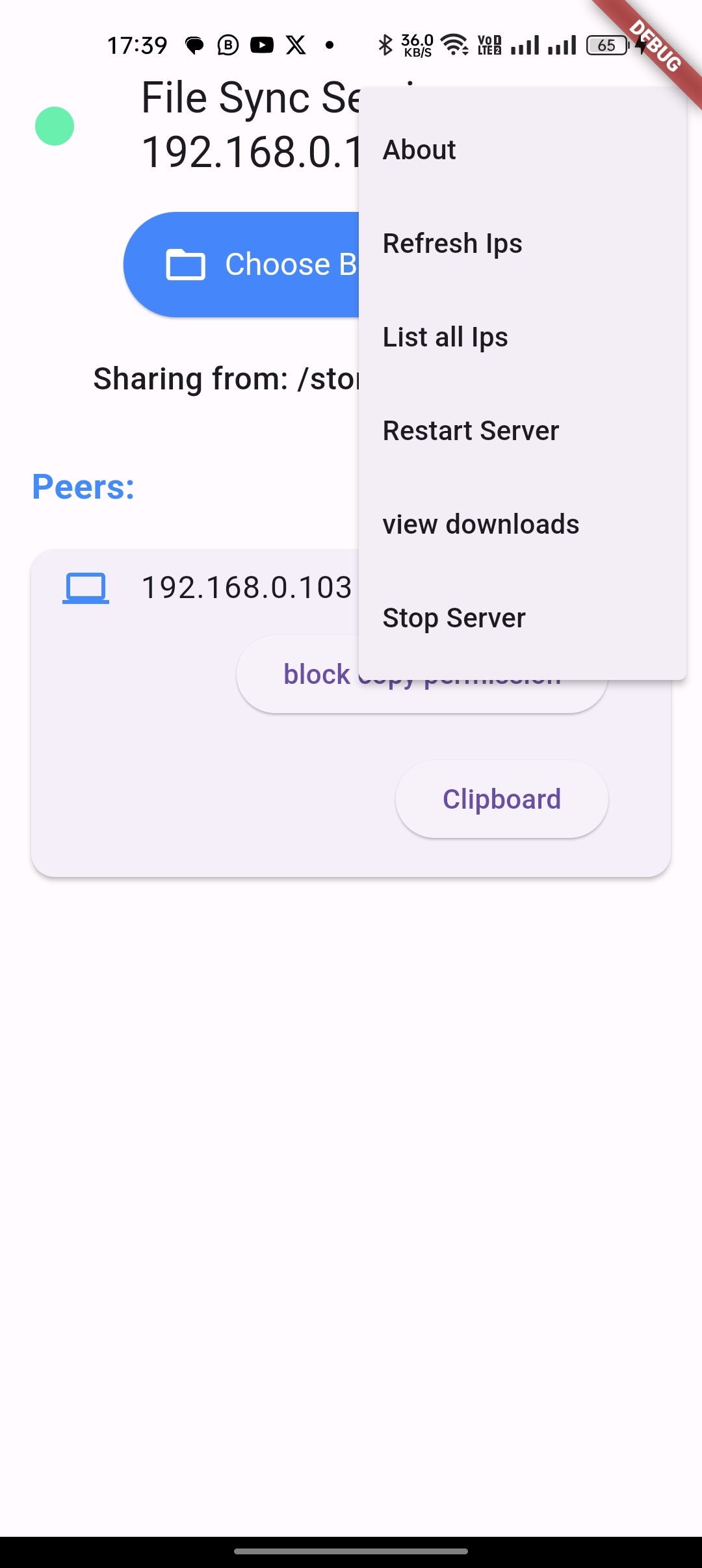 ### Progress Report of "FileSync" I have added support for clipboard. So now you can copy clipboard content from another device. basically remote copy paste is now possible. also, added basic remote file explorer UI. added options to change ip. ad