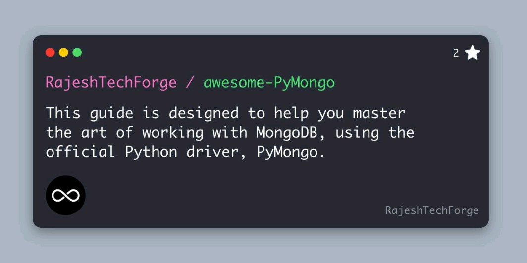 Hello everyone! Just wanted to let everyone know that I recently updated my awesome-PyMongo tutorial repository on GitHub. This guide is perfect for anyone looking to become a master at working with MongoDB using the official Python driver, PyMongo.