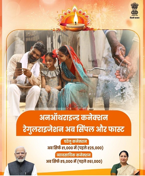 Good news for Delhi residents! The Delhi Government has announced the Regularization of Unauthorized Water and Sewer Connections Scheme 2025 under which citizens can legalize their unauthorized connections by paying a small penalty — ₹1,000 (domestic