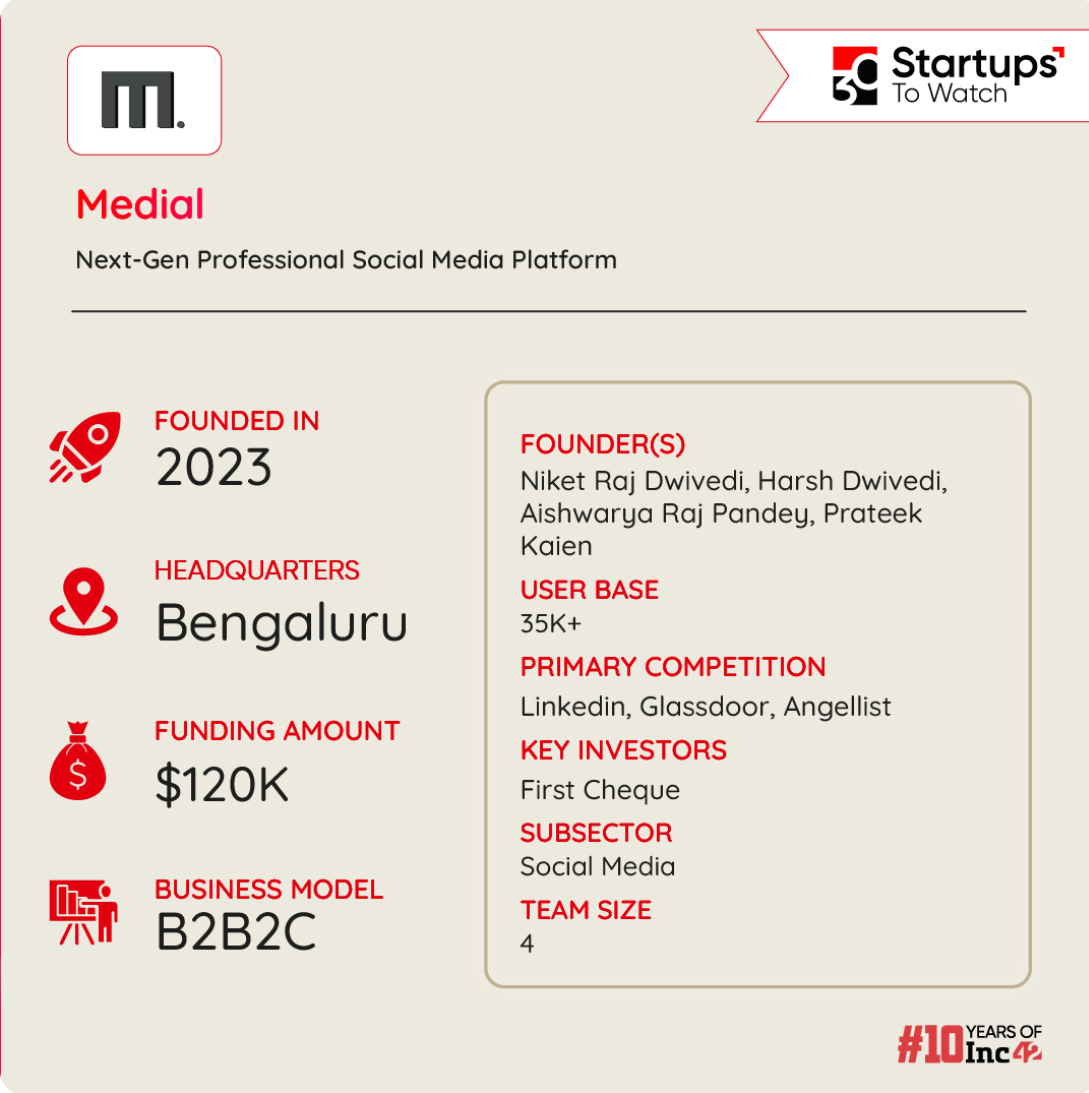 Proud to announce that Inc42 covered Medial in their 30 startups to watch list. Grateful to everyone one of you guys who are building Medial the right way! Thank you so much for all the support. Together, we will build India’s first professional ne