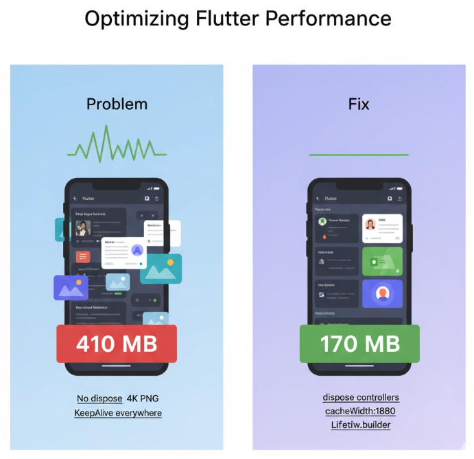 Flutter Memory, Explained Simply - How Flutter Allocates and Frees Memory for Widgets Make your app feel instant: smoother animations, fewer leaks, zero mystery pauses If you ship Flutter apps, you care about frames that don’t drop, screens that d