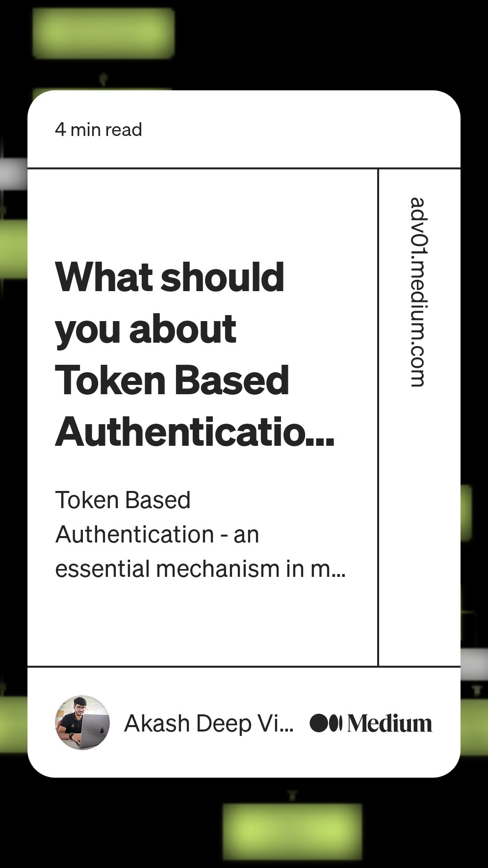 Wrote a Medium article on 'Token Based Authentication'. Please Have a look and share your feedback. Article link - https://adv01.medium.com/what-should-you-about-token-based-authentication-abf493626859