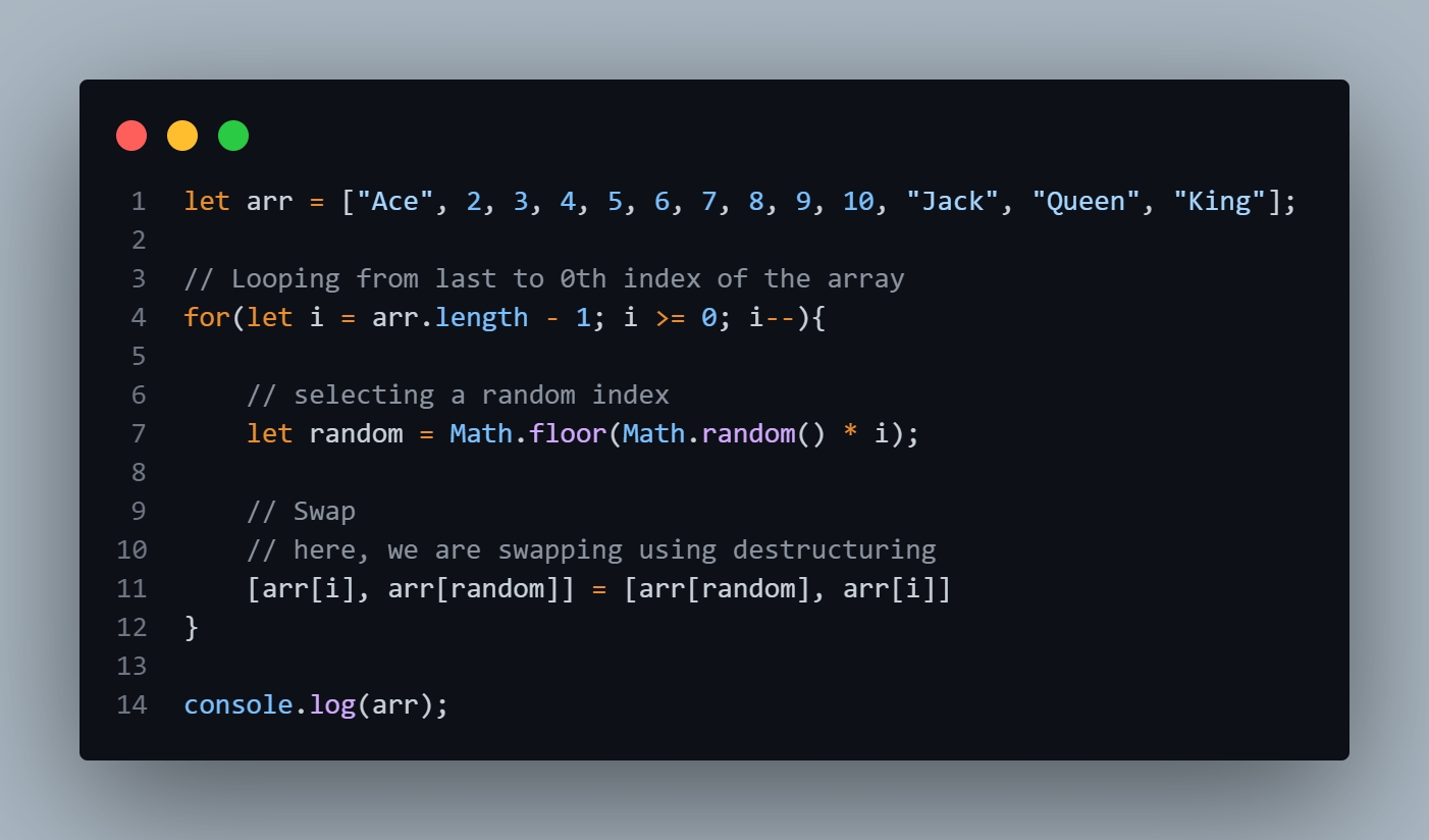 Fisher-Yates algorithm shuffles an array by iterating from the end, swapping each element with a randomly selected one preceding it. This ensures each element has an equal chance of ending up anywhere. Time complexity is O(n).