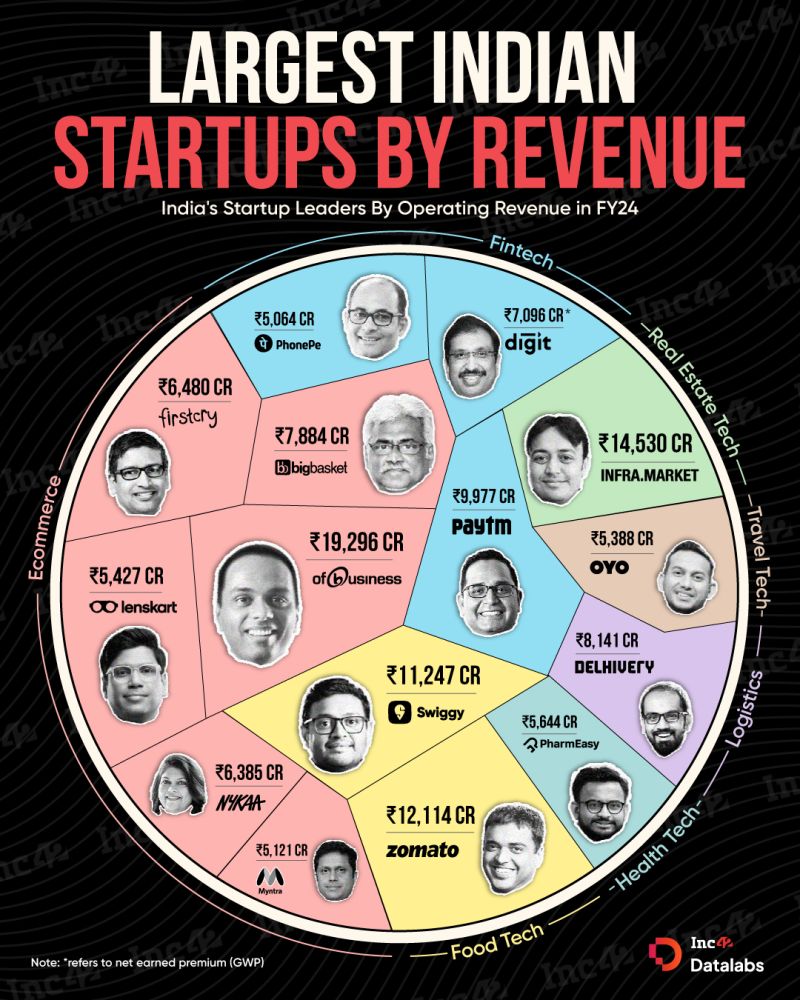 India’s Largest Startups by Revenue in FY24 – An Inspiring Growth Story! The likes of Zomato (₹12,114 Cr), Swiggy (₹11,247 Cr), and BigBasket (₹7,884 Cr) started small but have now become giants in their domains. These brands revolutionized how Indi