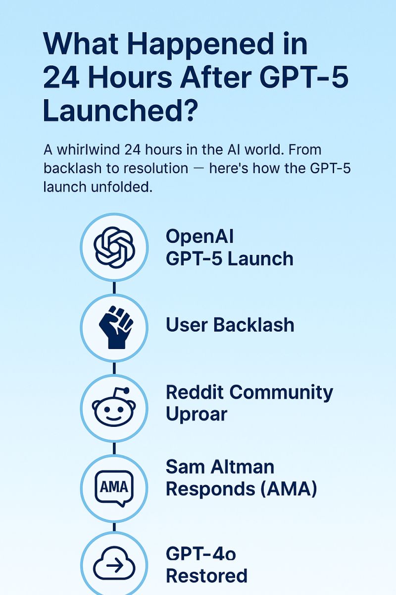 🤖 When OpenAI just pulled off the fastest product rollback in AI history👀. Here's what happened🔥and why every product leader should pay attention.🚀 They launched Ghat GPT 5 as a leap: marketed for PhD‑level reasoning and clearer answers. The pro