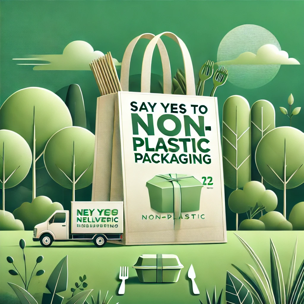 "India generates 3.5M tons of plastic waste annually, and food delivery apps like Zomato & Swiggy contribute heavily to it. It's time for a change! Say YES to eco-friendly, non-plastic packaging and support a greener future. 🌱 #Sustainability #Eco