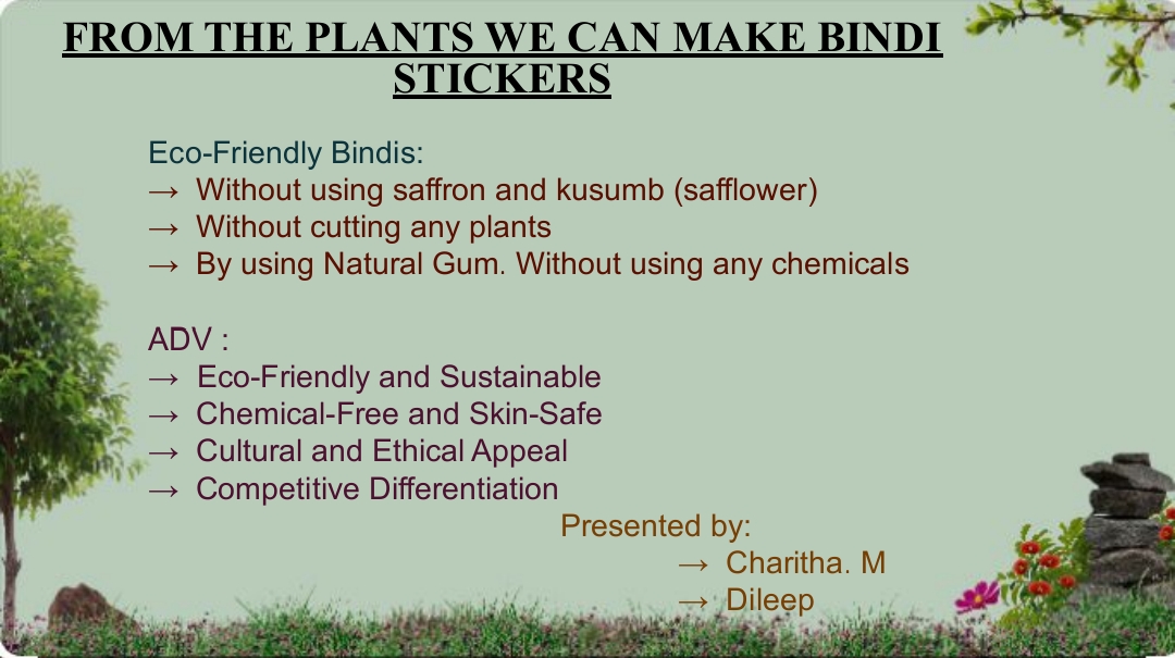 🌿✨ Reimagining Tradition with Sustainability! ✨🌿 Bindis have been a symbol of beauty and culture for centuries. But what if they could also be eco-friendly? 💚 We’re working on plant-based bindi stickers—made from natural, biodegradable materials