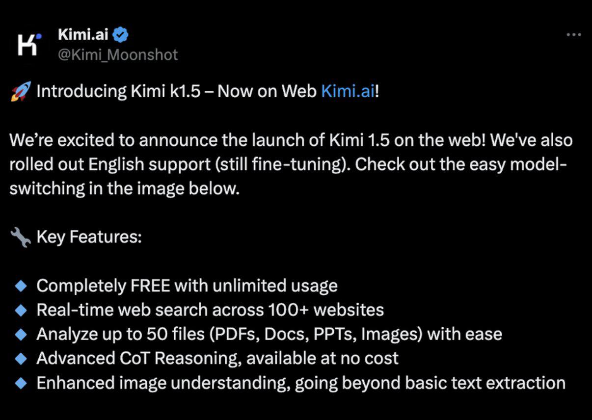 China is moving VERY fastโฆ ๐ First DeepSeek, now Kimi โ and itโs FREE with unlimited usage! They claim it BEATS GPT-4o and 3.5 Sonnet on multiple benchmarks. ๐คฏ Real-time web search, advanced reasoning, 50-file analysis โ ALL FOR FREE. Is OpenAI