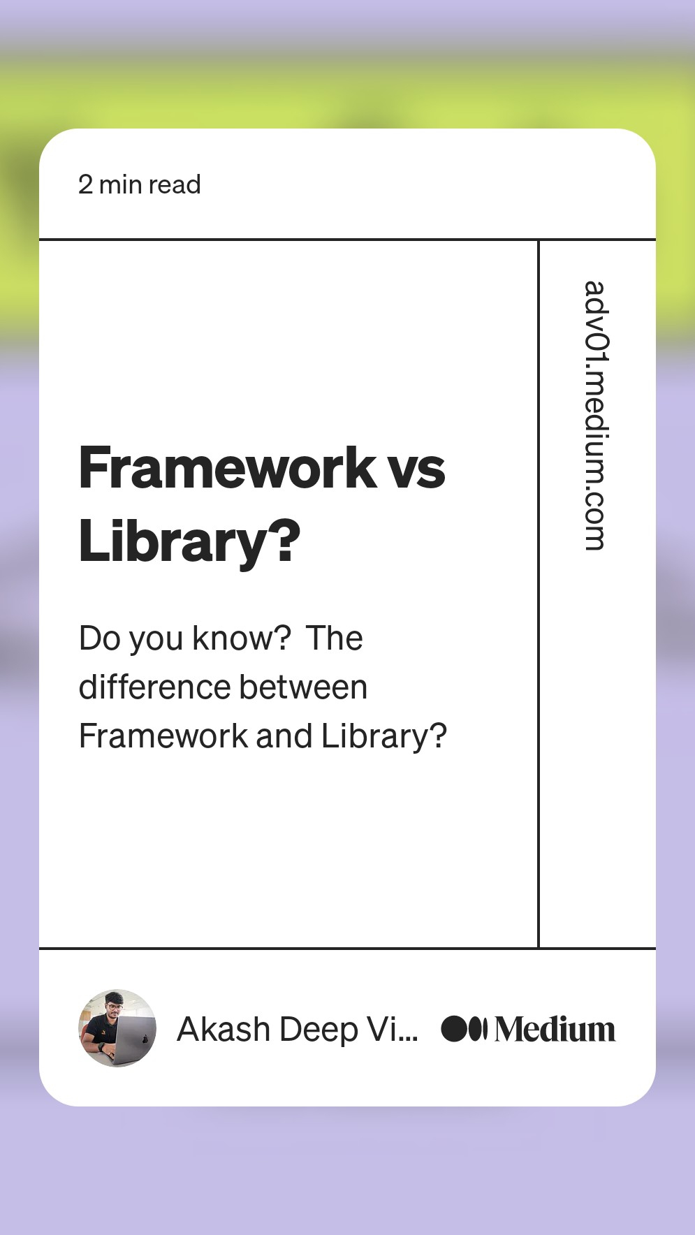 Do you know the difference between Framework and Library? If not then read this article - https://adv01.medium.com/framework-vs-library-885c944c3050
