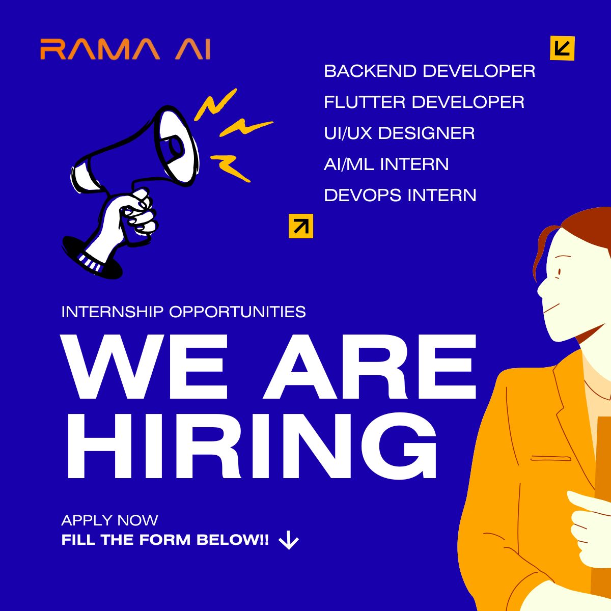 Internship Opportunity at RamaAI Real-Time Adaptive Multi-Lingual Agentic AI Remote and Hybrid Options Available | Duration: 15 Weeks Rama AI is inviting dedicated and enthusiastic individuals to join us as interns across various technical roles.