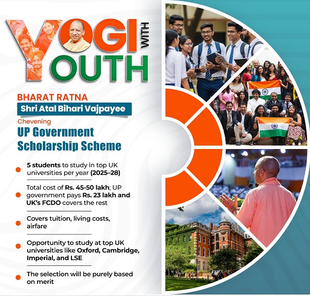 🚨 Uttar Pradesh Chevening Atal Scholarship 🚨 Do you dream of studying in Oxford, Cambridge, LSE, or Edinburgh? Now it’s possible with the Bharat Ratna Shri Atal Bihari Vajpayee–Chevening Scholarship Scheme. Benefits: ✅ Free Master’s Degree (1 Yea