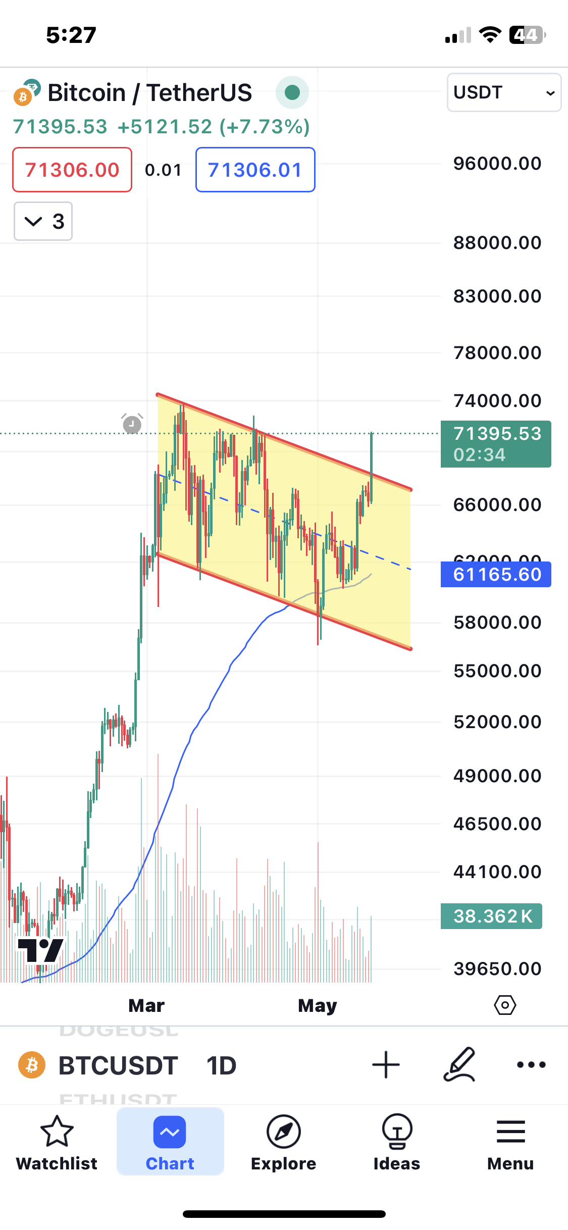 Bitcoin just broke out of a flag pattern! Historical data suggests big rallies post every halving event. Put on your seatbelt and get ready for the next bull run.