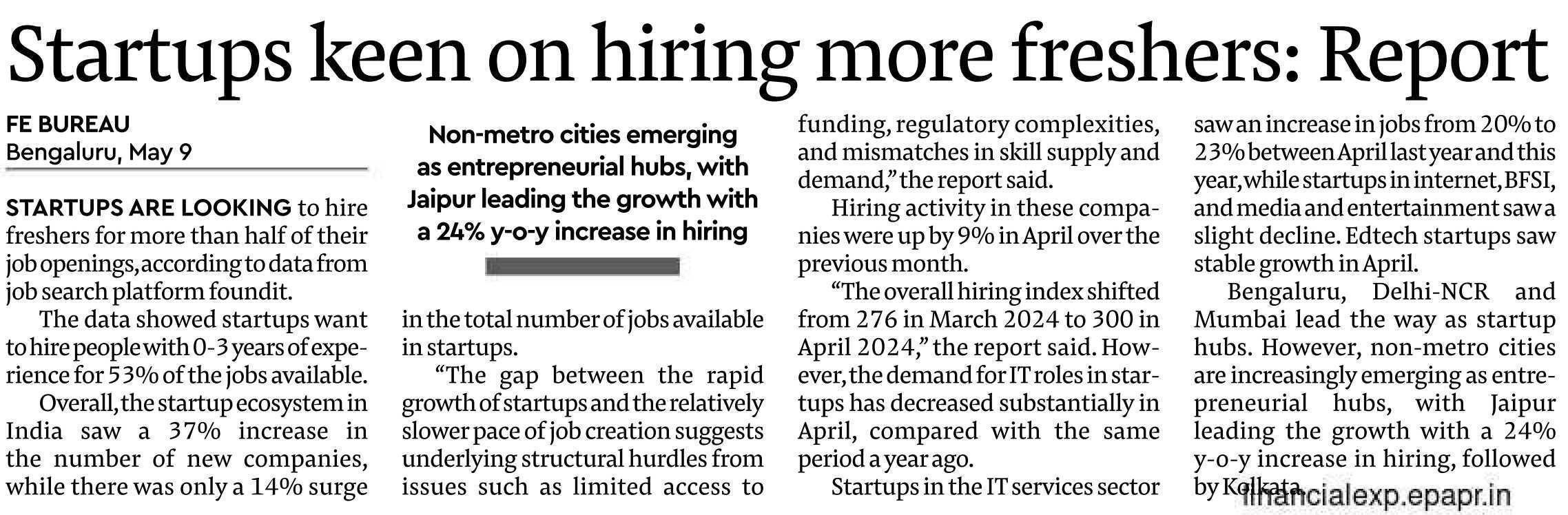 Good news for freshers. Startup also end up providing better learning and growth opportunities.