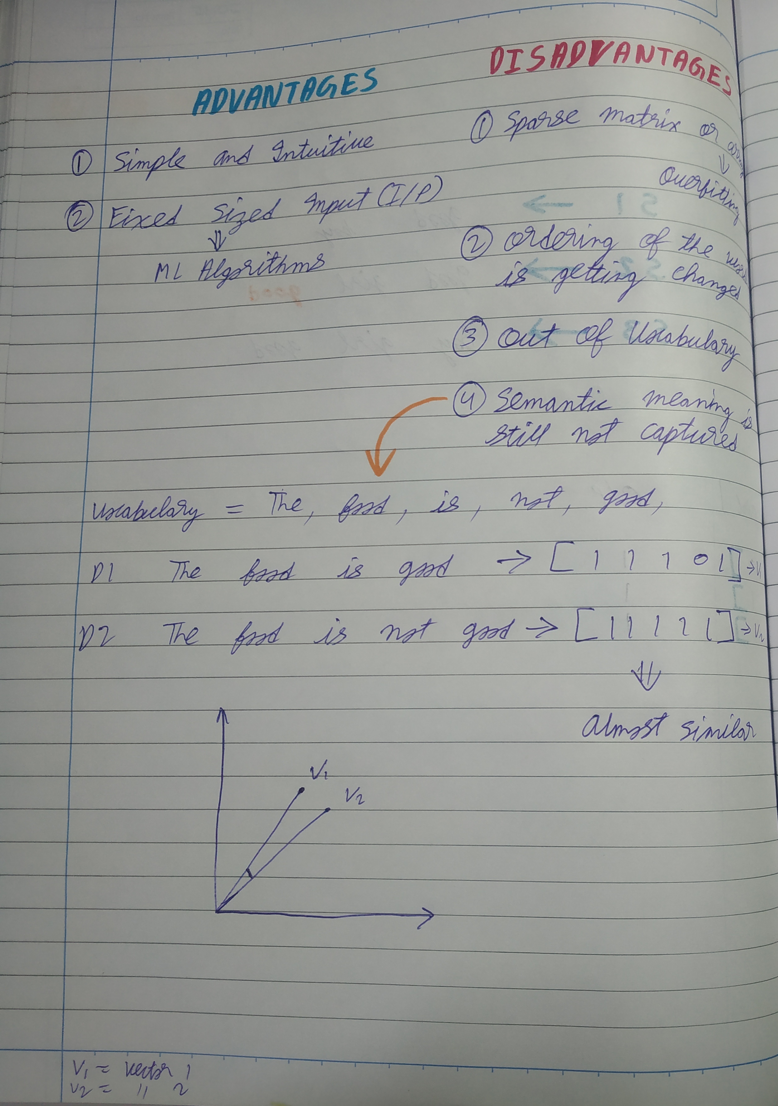 Day 8 of learning AI/ML as a beginner. Topic: Bag of Words (BOW) Yesterday I told you guys about One Hot Encoding which is one way to convert text into vector however with serious disadvantages and to cater to those disadvantages there's another on