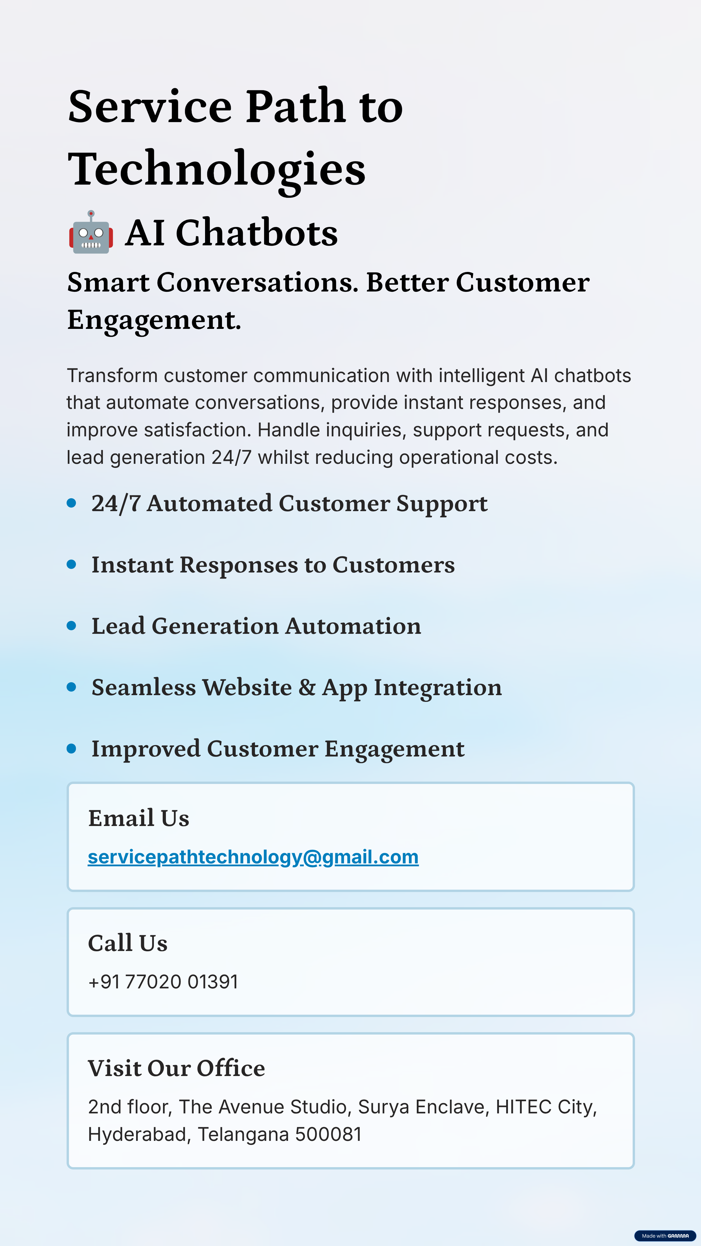 Businesses today need instant communication and 24/7 support. Our AI Chatbots help companies automate customer conversations, answer queries instantly, and provide smart assistance across websites, apps, and messaging platforms. With advanced natura