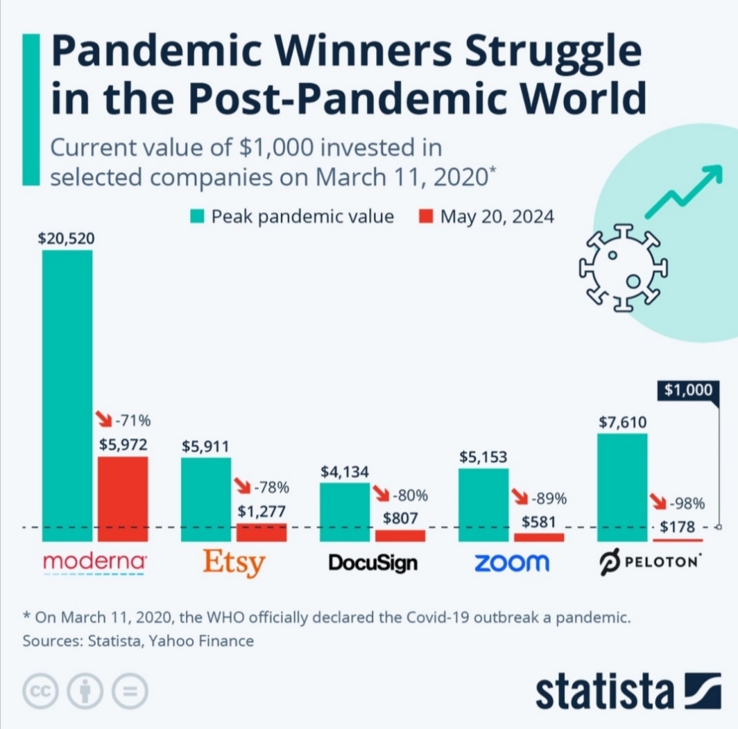 Event based upticks don't generally convert into sustainable growth. The image below is a cautionary tale for investors who chase trends. It's important to remember that past performance is not necessarily indicative of future results. Just because a company is doing well during a crisis doesn't mean it will continue to do well once the crisis is over. What according to you are the real drivers for sustainable growth of companies?